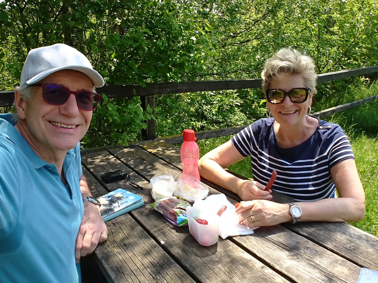 Beim Kinderspielplatz hinder dem Gasthaus „Das Chadim“ hielten wir Mittagsrast. Leider hatte ich zwar Wurst und Käs mit, aber die Weckerln vergessen.