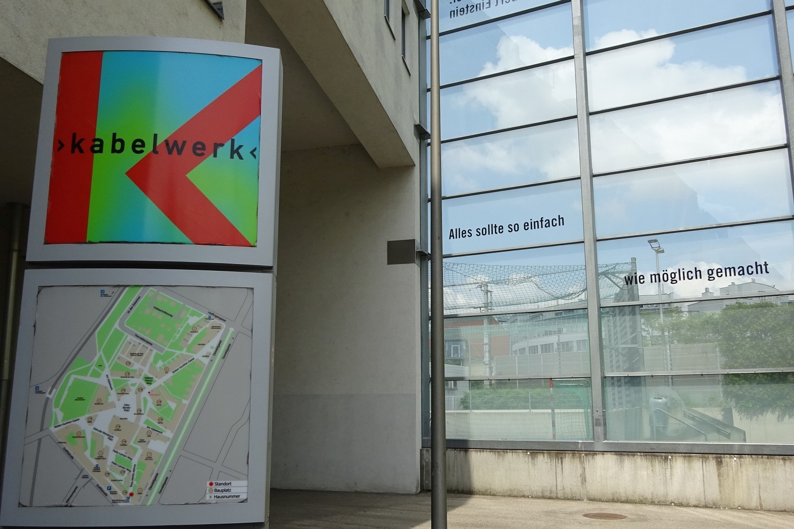 Schließlich ging es über die Trasse der Badner Bahn und S60 Richtung > Kabelwerk <, einer Wohnsiedlung auf den Gründen der ehemaligen Kabel und Drahtwerke AG.