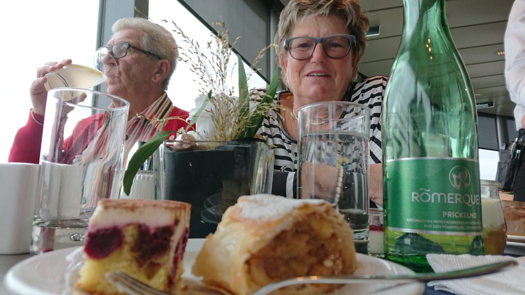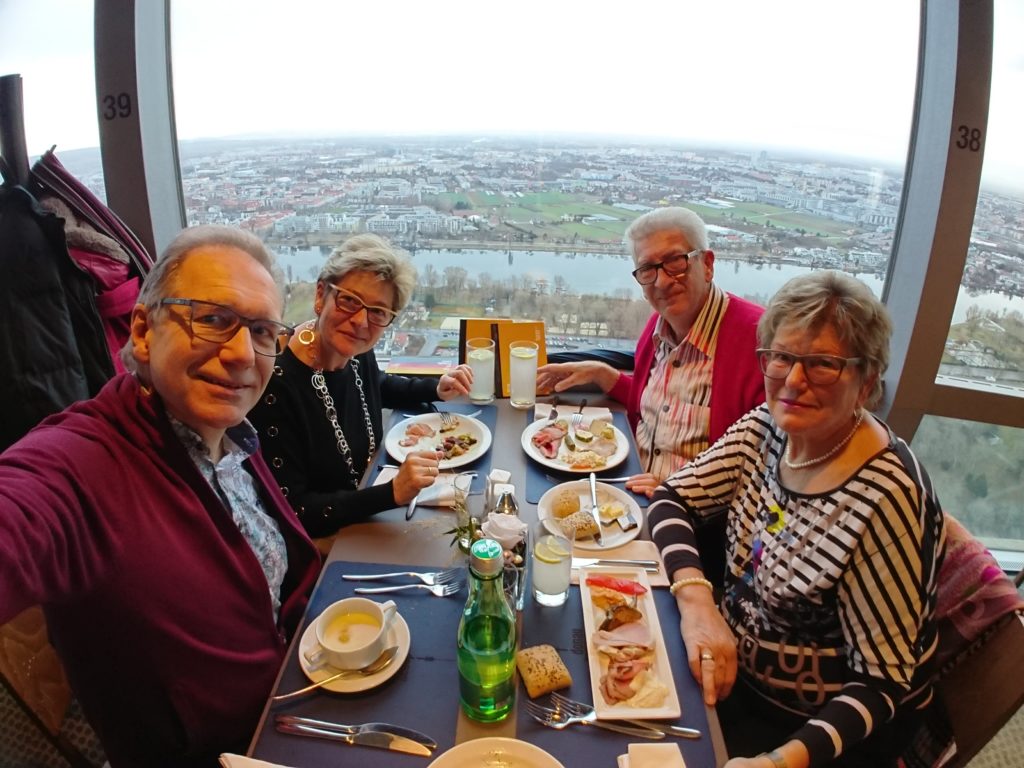 Sieglinde und Brigitte hatten von Christa einen Brunch am Donauturm geschenkt bekommen