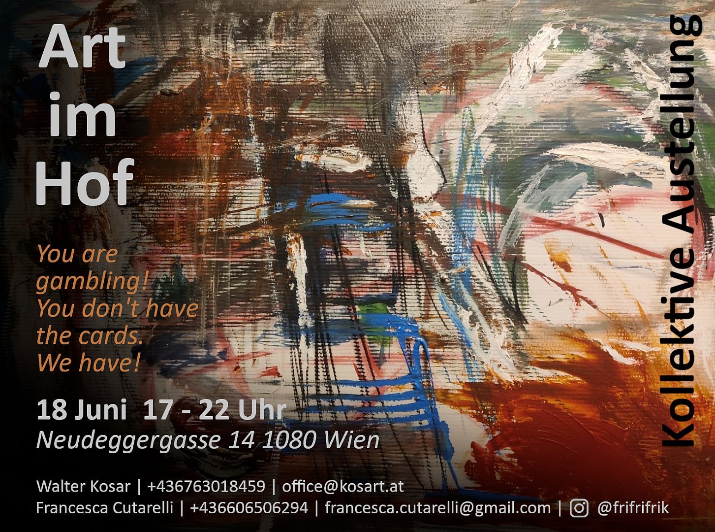 Dieses Haus ist eines der künstlerisch bedeutendsten Vorstadthäuser Wiens, es wurde 1777 erbaut und hat schon viele künstlerische Initiativen beherbergt, z.B. das Theatro Kosilo, das damals kleinste Theater Wiens. Mittlerweile befindet sich hier das Atelier von Francesca Cutarelli. Kunstbetrieblich erwähnenswert ist, dass die Bilderausstellung gemeinsam durch die Ausstellenden realisiert wird – ganz im Sinne der Neuen Sparsamkeit des Kulturbetriebs: Irgendwie schön – ganz schön spannend – und ohne Kulturförderung.