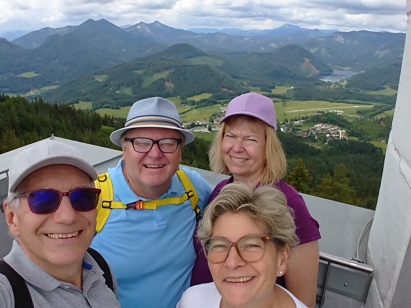 Bei noch immer trockenem Wetter ging’s mit der Gondel (NÖ-card) auf die Bürgeralpe, wo wir eine kleine Runde drehten. Beim Einkehren auf der Hütte hat es bereits gedonnert. Dann kam die Meldung von der Wirtin, dass die Gondel wegen Gewitter eingestellt wird und so sind wir sehr überstürzt (ohne Austrinken) hinunter gefahren, wo auch schon das Gewitter voll loslegte. Wir zind zum Pirker in die Konditorei geflüchtet, aber dann noch immer bei Regen zum Bahnhof gegangen. Eine ziemlich bügelfeuchte Rückkehr.