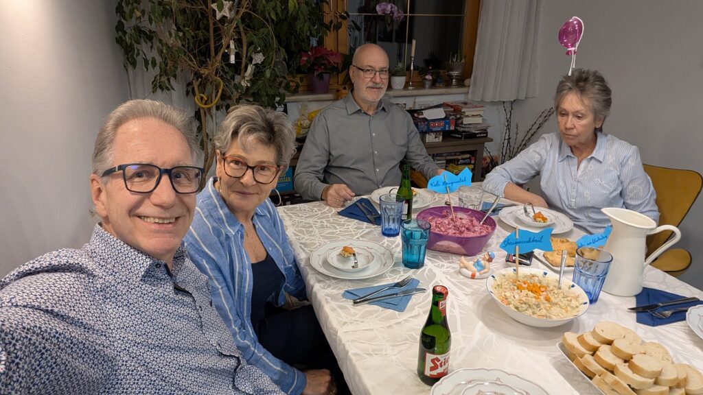 Heuer verbrachten wir den Jahreswechsel in Korneuburg bei den Mischeks. Ein sehr entspannter Abend mit viel Kulinarik. Wir starteten mit einem Suppen-Fisch-Fondue das wunderbar schmeckte. Erst später gab es dann Kaffee und Lambadaschnitten. Und bei den Mischeks wird natürlich auch gespielt: Krakel-Orakel und Dixit.