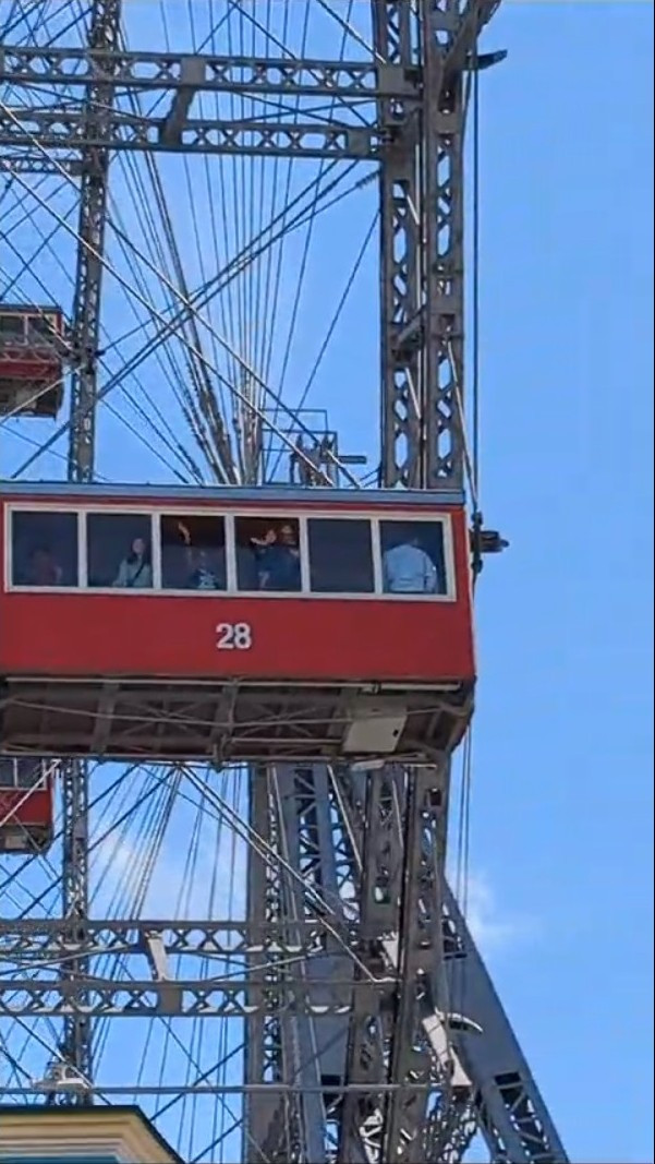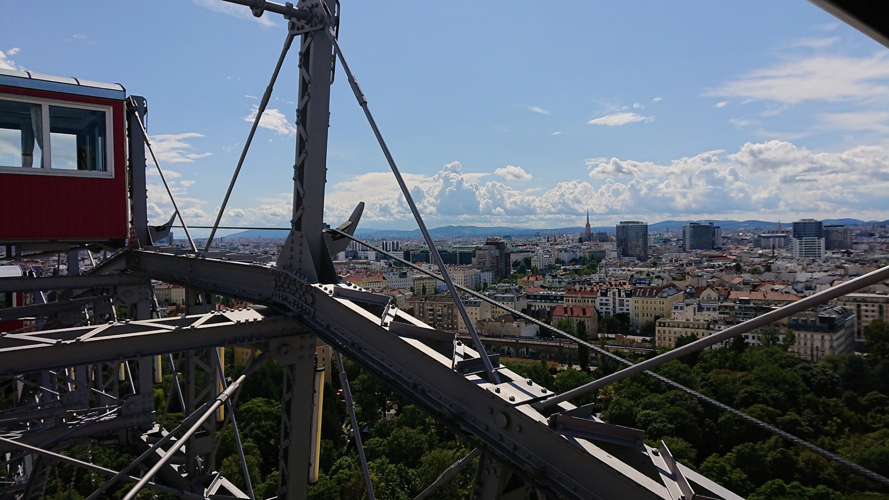 Eigentlich war diesmal die „Taverne am Sachsengang“ geplant, aber dort gab es schon Wochen vorher keinen Platz. Ausweichquartier wurde das Schweizerhaus. Dort wurden wir schon vor dem Essen vom Gewitter überrascht und mussten unseren Tisch unter mehreren Schirmen aufteilen. Aber immerhin konnten wir so die Stelze im Trockenen essen, es hörte auch bald wieder zu regnen auf. Wir hatten in der NÖ-card den Eintritt für das Riesenrad, und so machten wir noch einen kurzen Abstecher durch den Prater.