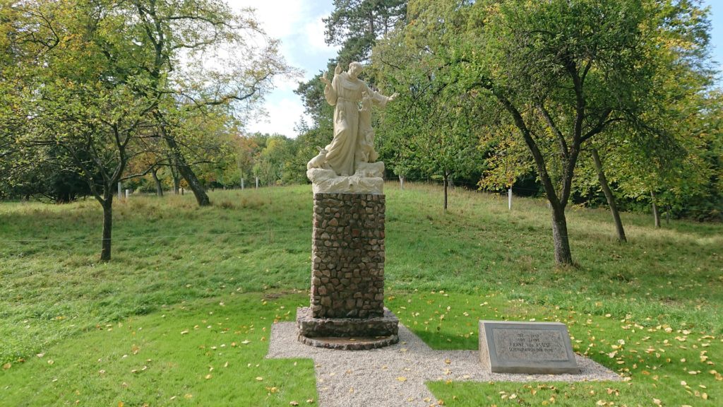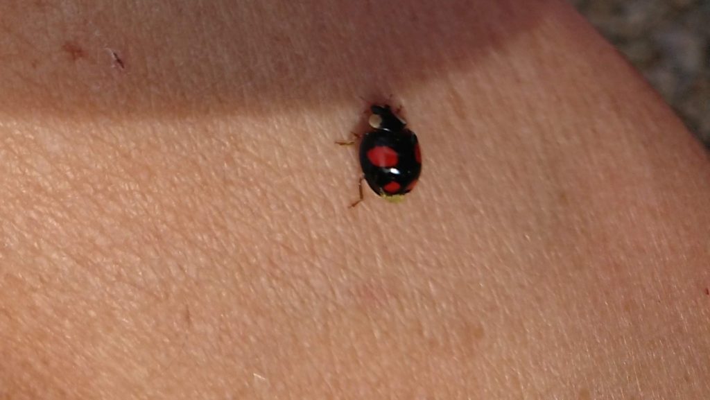 Der Kellner war etwas eigenwillig und so wechselten wir für Kaffee und Kuchen zur Hermes Villa. Dabei kamen wir am neu übersiedelten „Franz von Assisi-Denkmal“ vorbei. Sowohl dort als auch beim Rohrhaus fiel uns eine Marienkäfer-Invasion auf. Allerdings waren es nicht die roten Siebenpunkt Käfer, sondern orangegelbe bzw. ein paar schwarze mit roten Punkten.