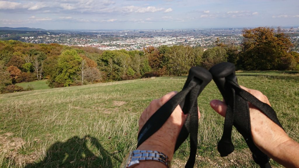 Da wir noch immer nicht genug hatten, wanderten wir nicht zum Lainzer Tor, sondern vorbei am St. Veiter Tor über den Wiener Blick wieder zurück zum Nikolai Tor. Am Weg steht ein Grenzstein mit der Inschrift „Ω OCO 1615“ und verweist damit auf den Besitz des Klosters (Officium Conventus). Zurück sind wir dann vom Nikolai Tor zum 49 gegangen, das ist sogar eine Spur kürzer als zur U4 in Hütteldorf. (Und man kann beim Spar auch noch Leberkäs-Semmeln kaufen!)