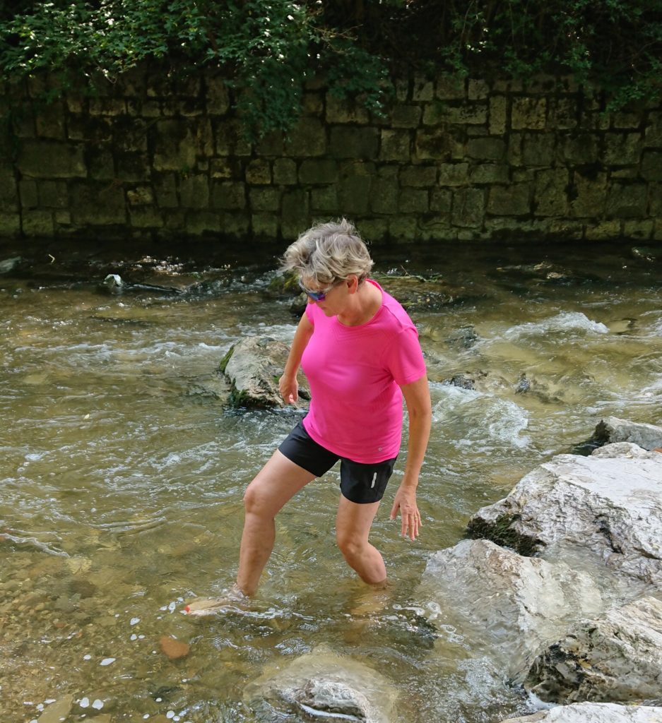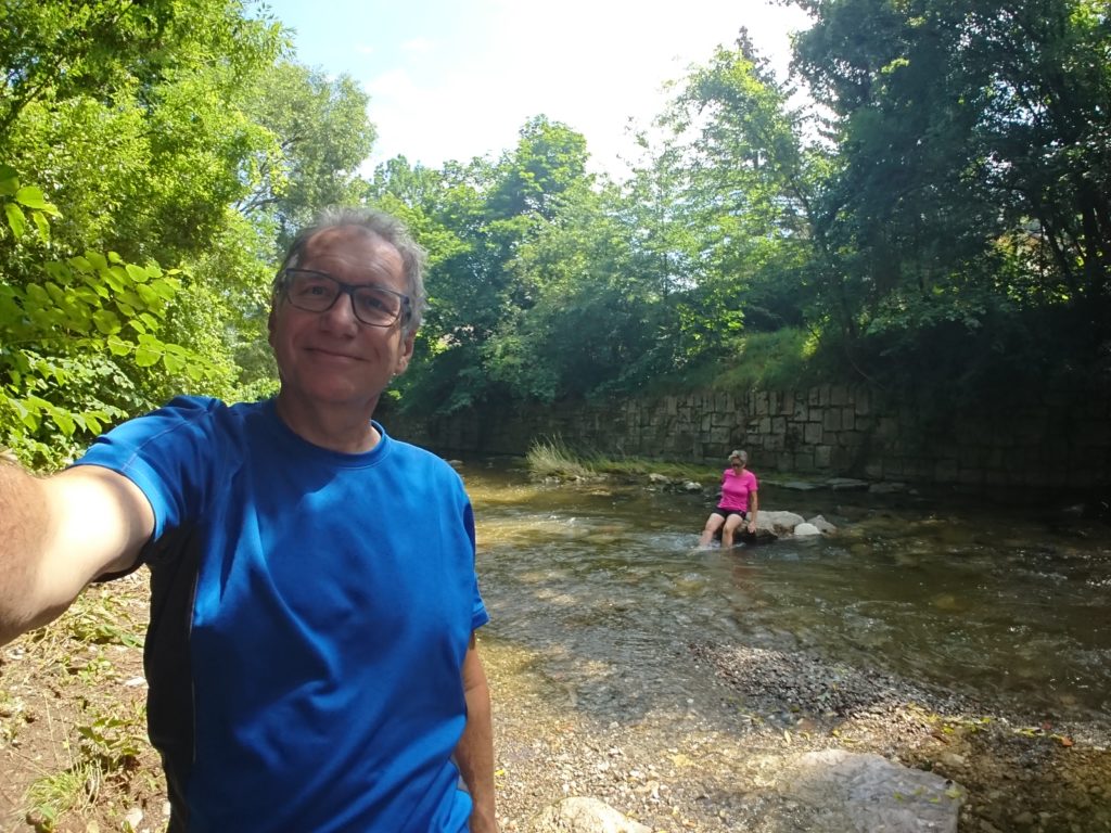 Ein 30 Grad Sommertag – wir waren mit den Fahrrädern in Purkersdorf und da musste wir zumindest ein Fußbad im Wienfluss nehmen!