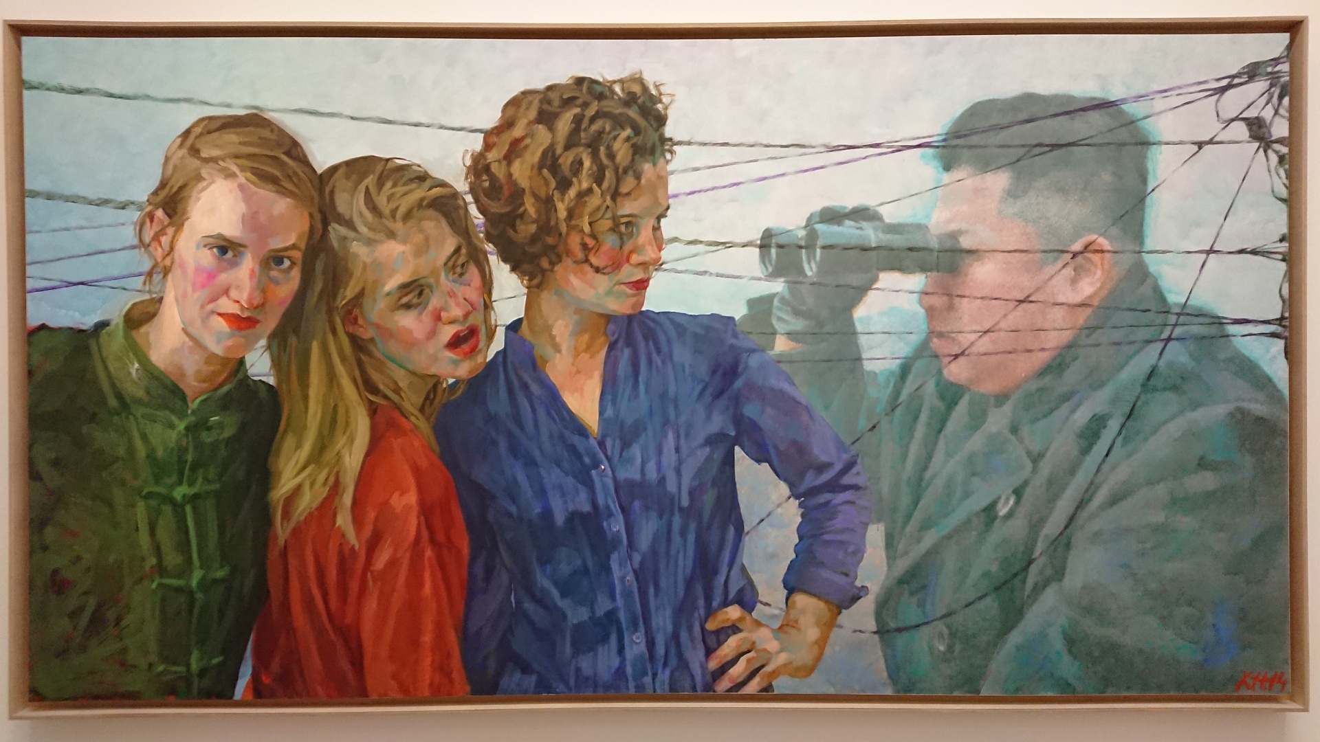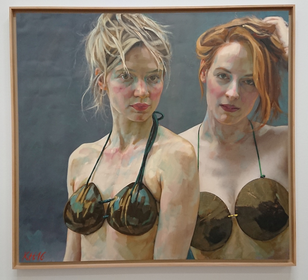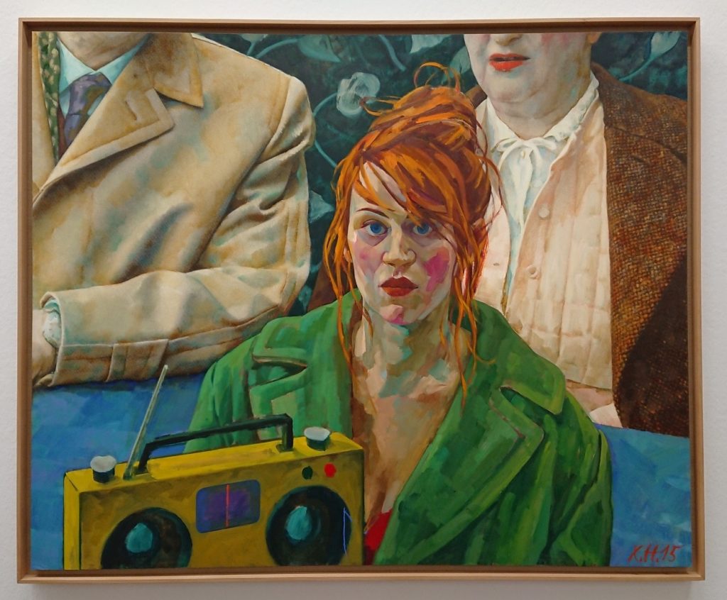 Dort konnte man auch nachlesen, dass Xenia Hausner ihre Bildkompositionen akribisch im Studio mit Modellen und Kulissen aufbaut und fotografiert, und dann nach dem Foto malt.