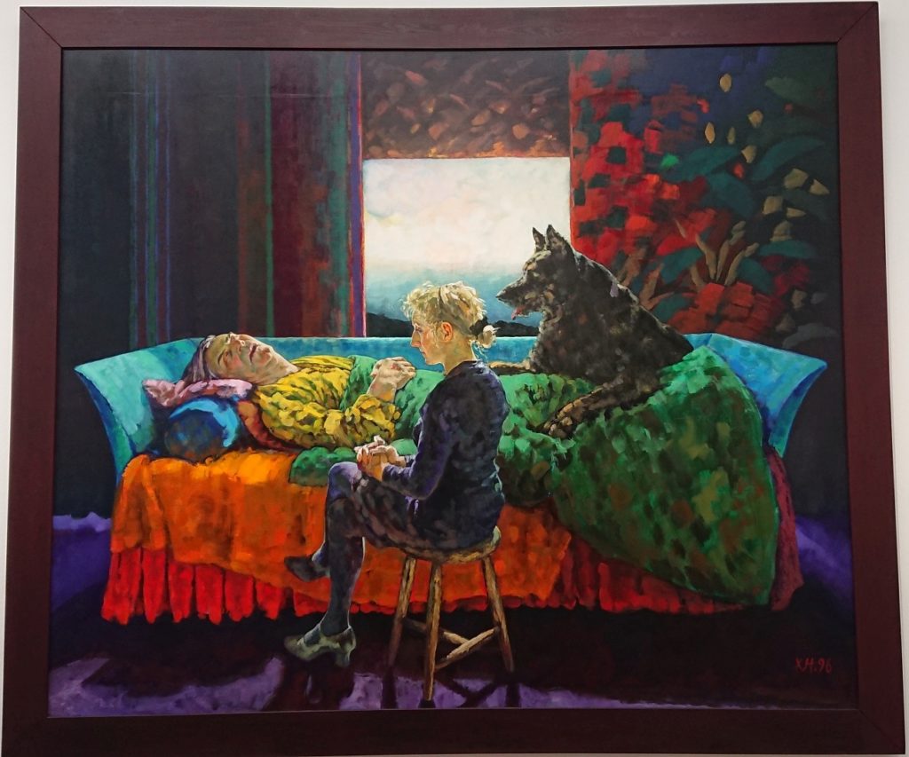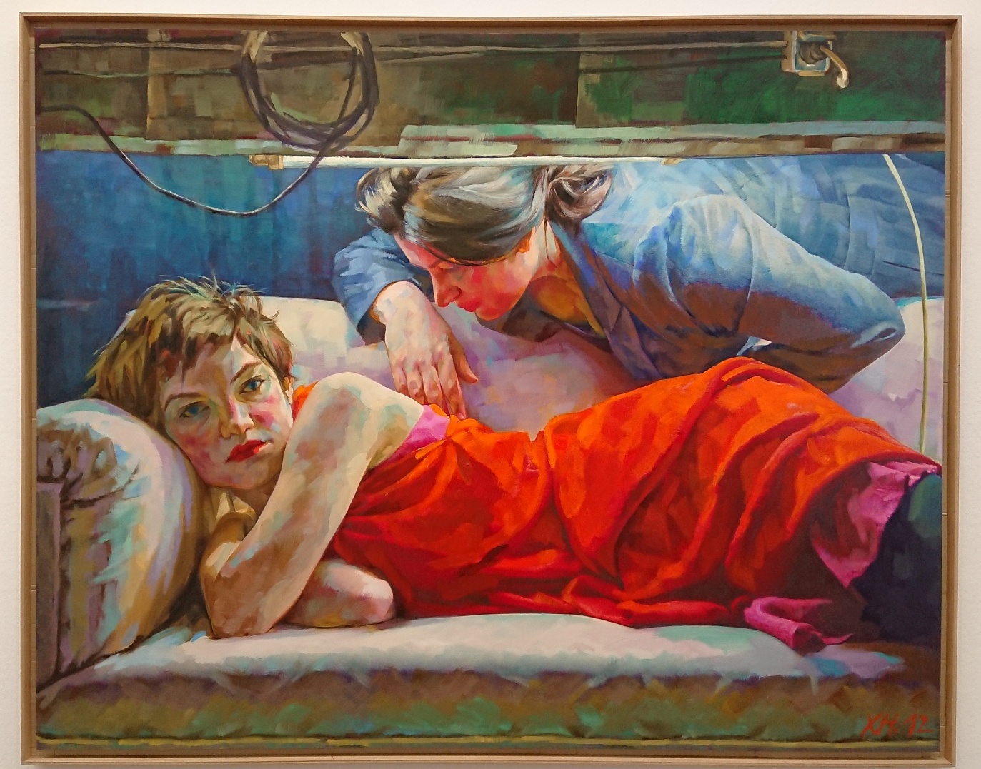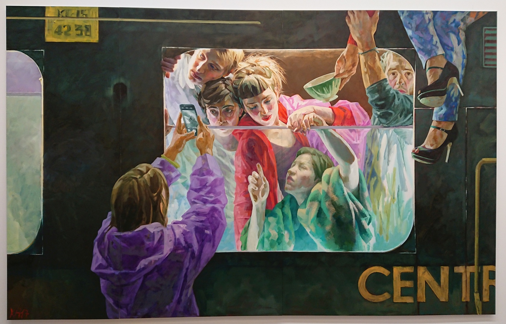 Dort konnte man auch nachlesen, dass Xenia Hausner ihre Bildkompositionen akribisch im Studio mit Modellen und Kulissen aufbaut und fotografiert, und dann nach dem Foto malt.