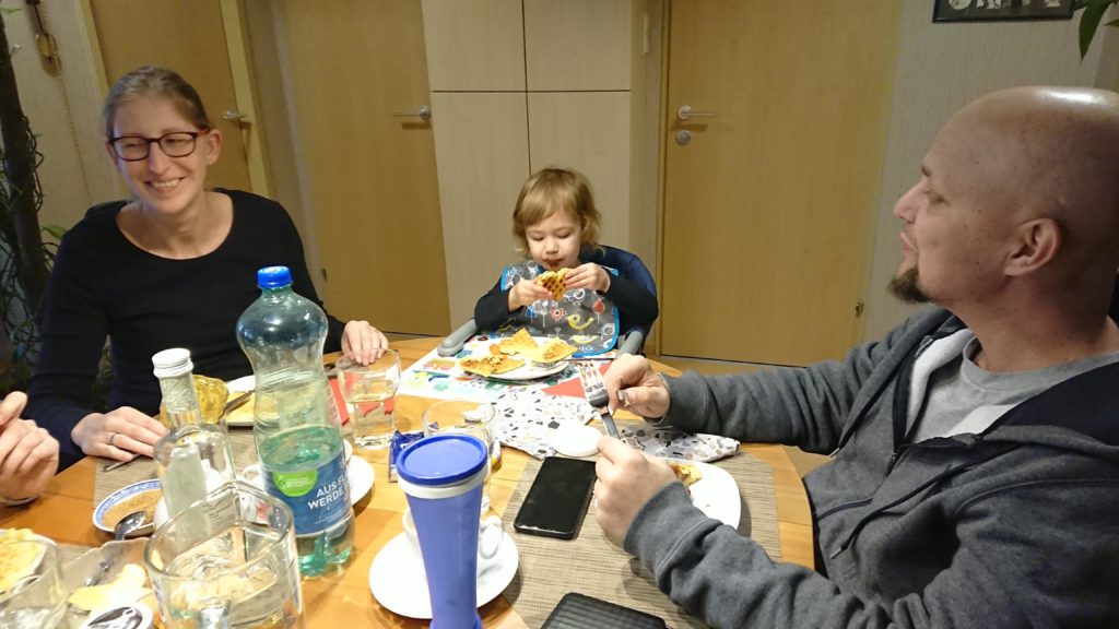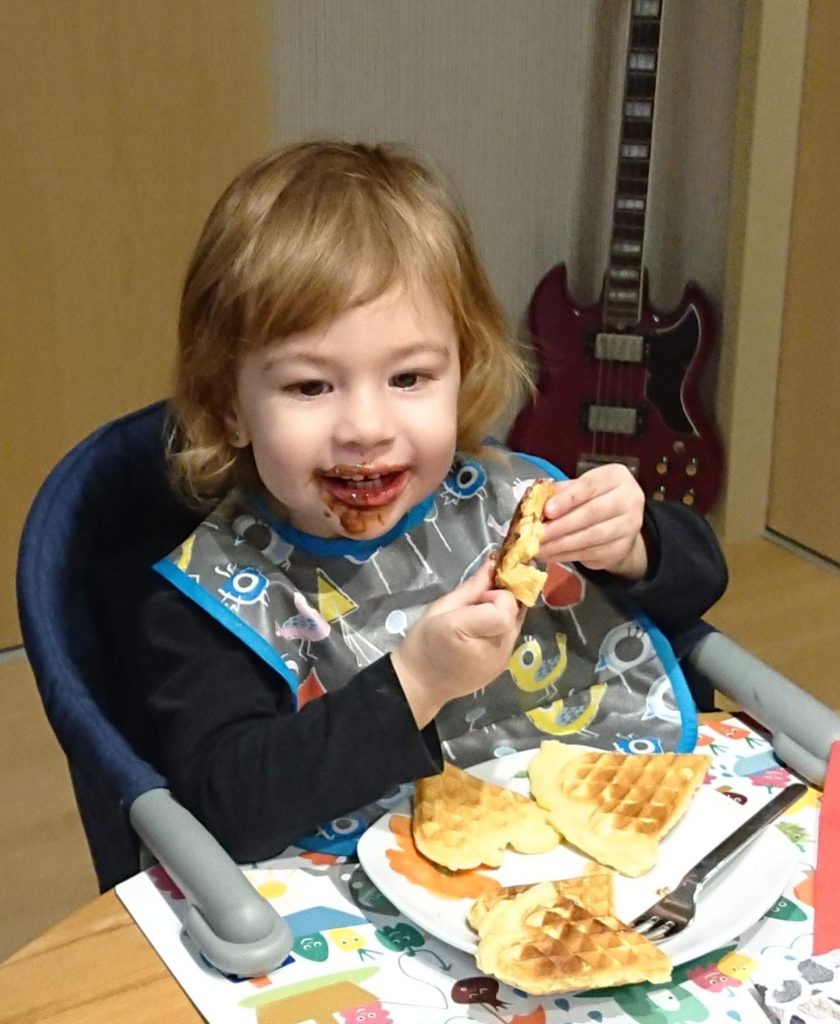 Besuch von Amelie 4. März 2020 Amelie kam mit Sandra und Thomas wieder einmal zu Besuch. Zur Jause kam dann noch Corinna . Es gab Waffeln mit Nutella. Amelie war zufrieden!