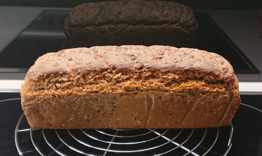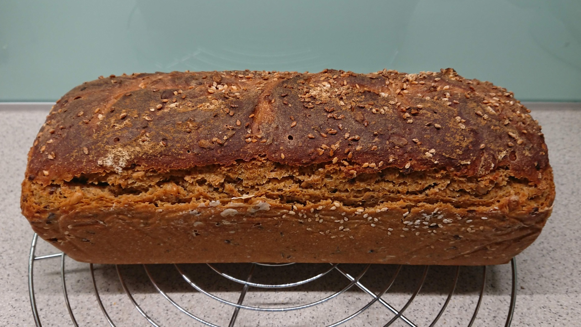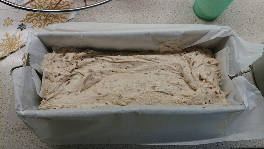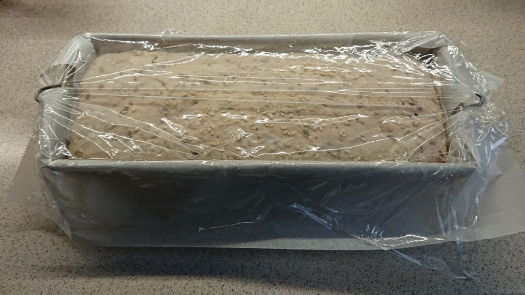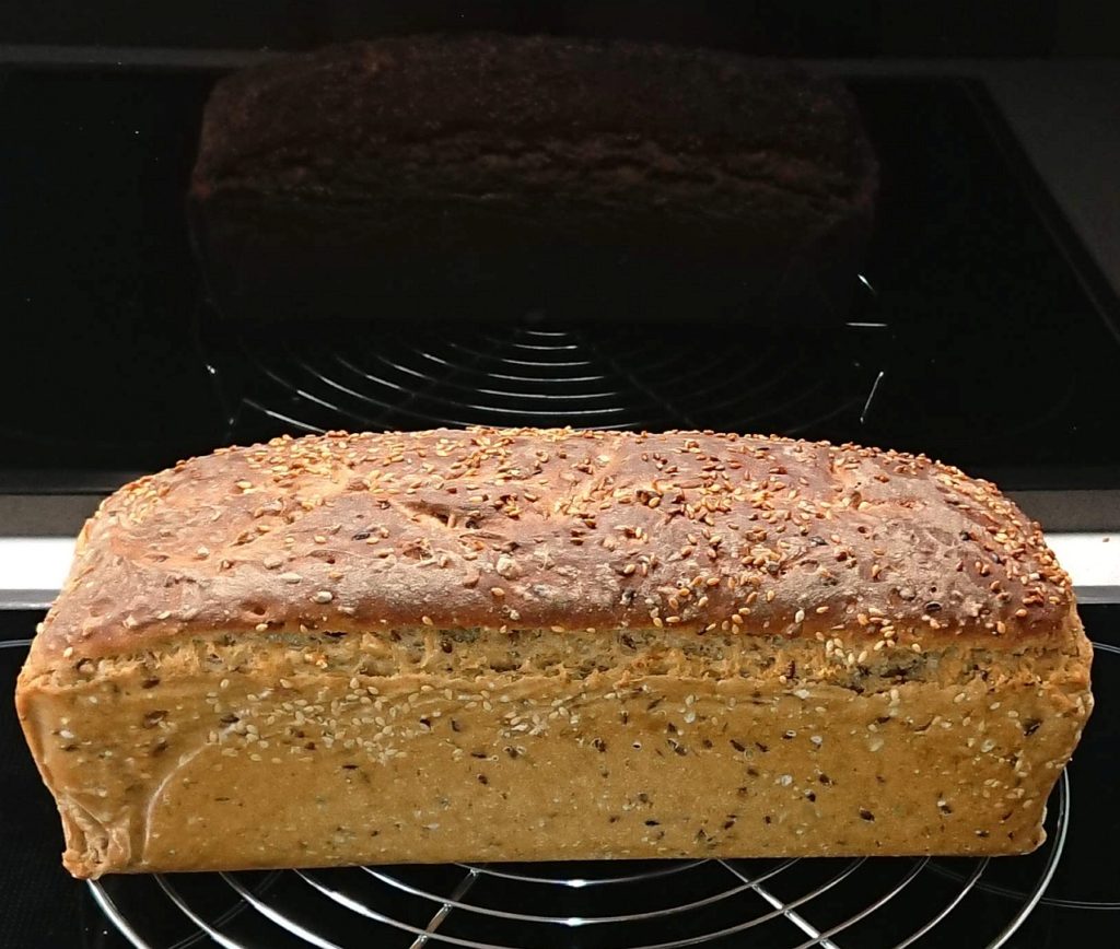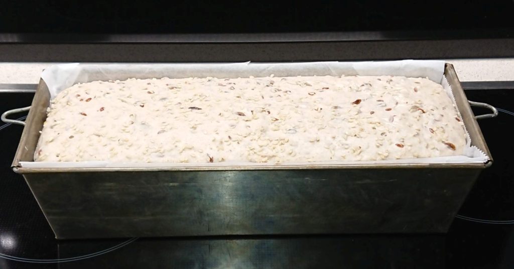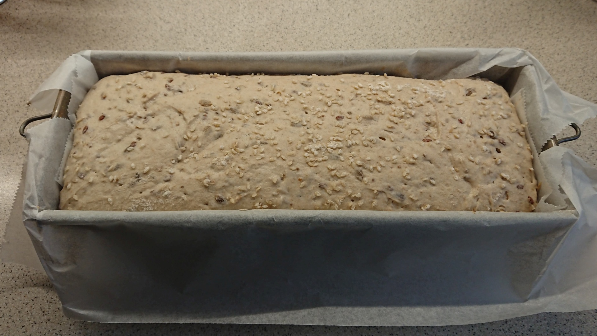 Um 7:30 Sauerteig angesetzt, etwas später die Sonnenblumenkerne geröstet und mit dem Leinsamen eingeweicht. Nach 6 Stunden hab ich dann den Teig geknetet und in die Kastenform gefüllt, nach weiteren 2 Stunden hab ich es dann gebacken.