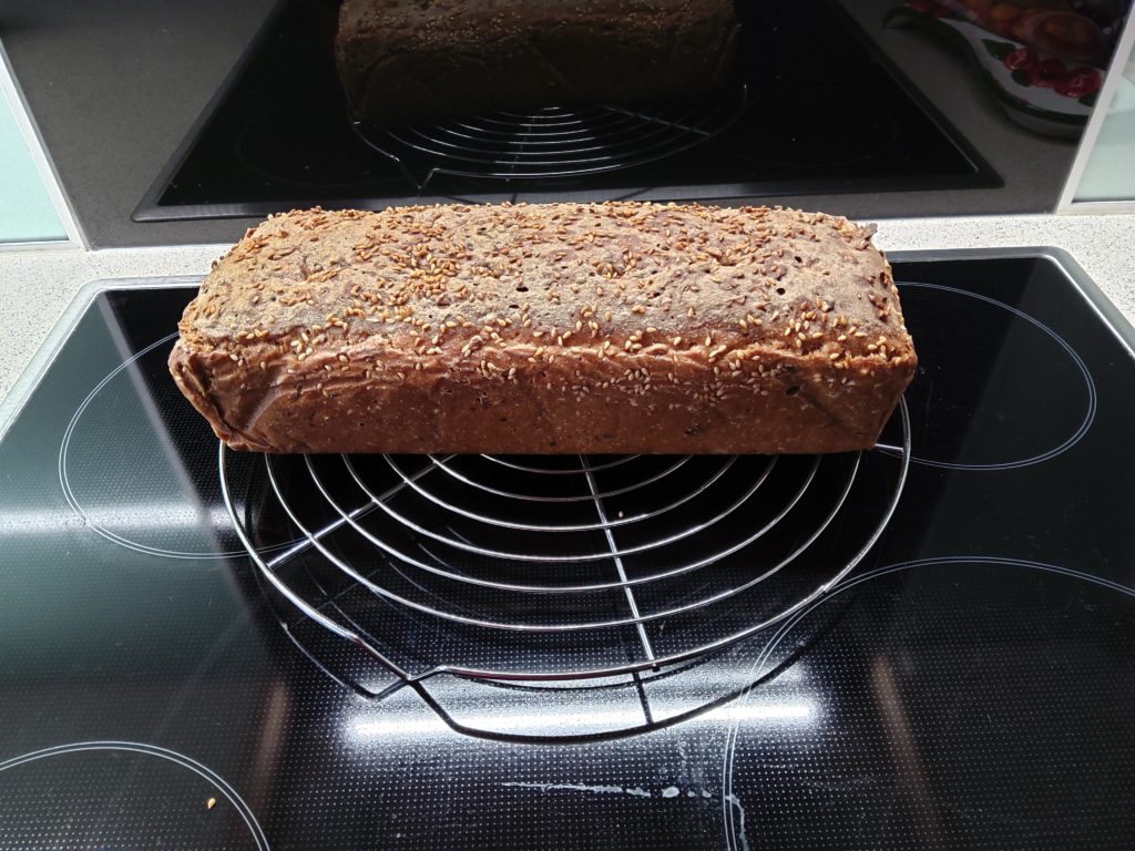 Gestern hab ich wieder ein weiteres Peter-Standard-Roggen-Dinkel-Brot gebacken . Ganz nach Rezept mit perfektem Ergebnis!