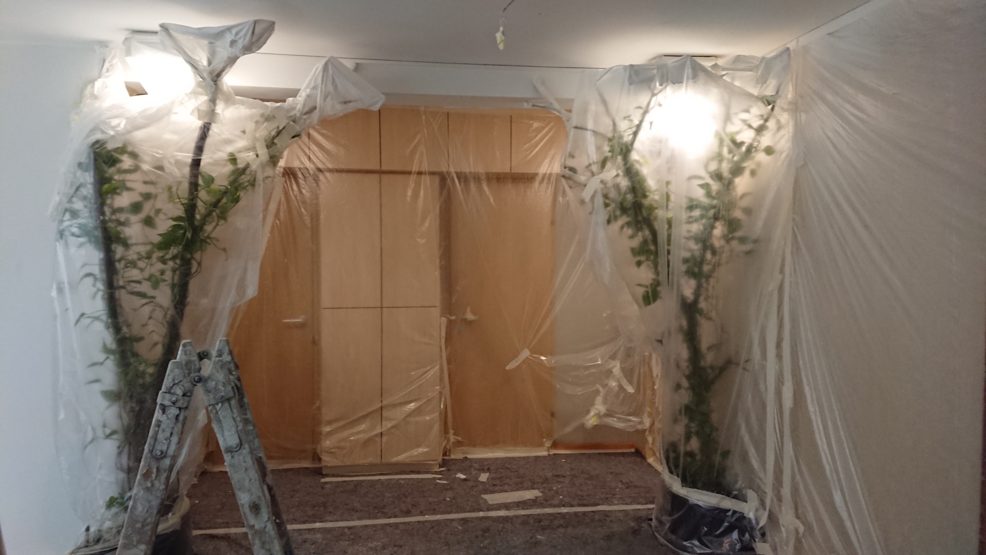 Die Beleuchtung beim Vorhang war noch eine Herausforderung, weil der zuerst gekaufte Warmton-LED-Streifen eine scheußliche, rosa-lila Lichtfarbe hatte. Also nochmals herunter damit und einen Neuen Steifen in der richtigen Lichtfarbe kaufen und aufkleben.