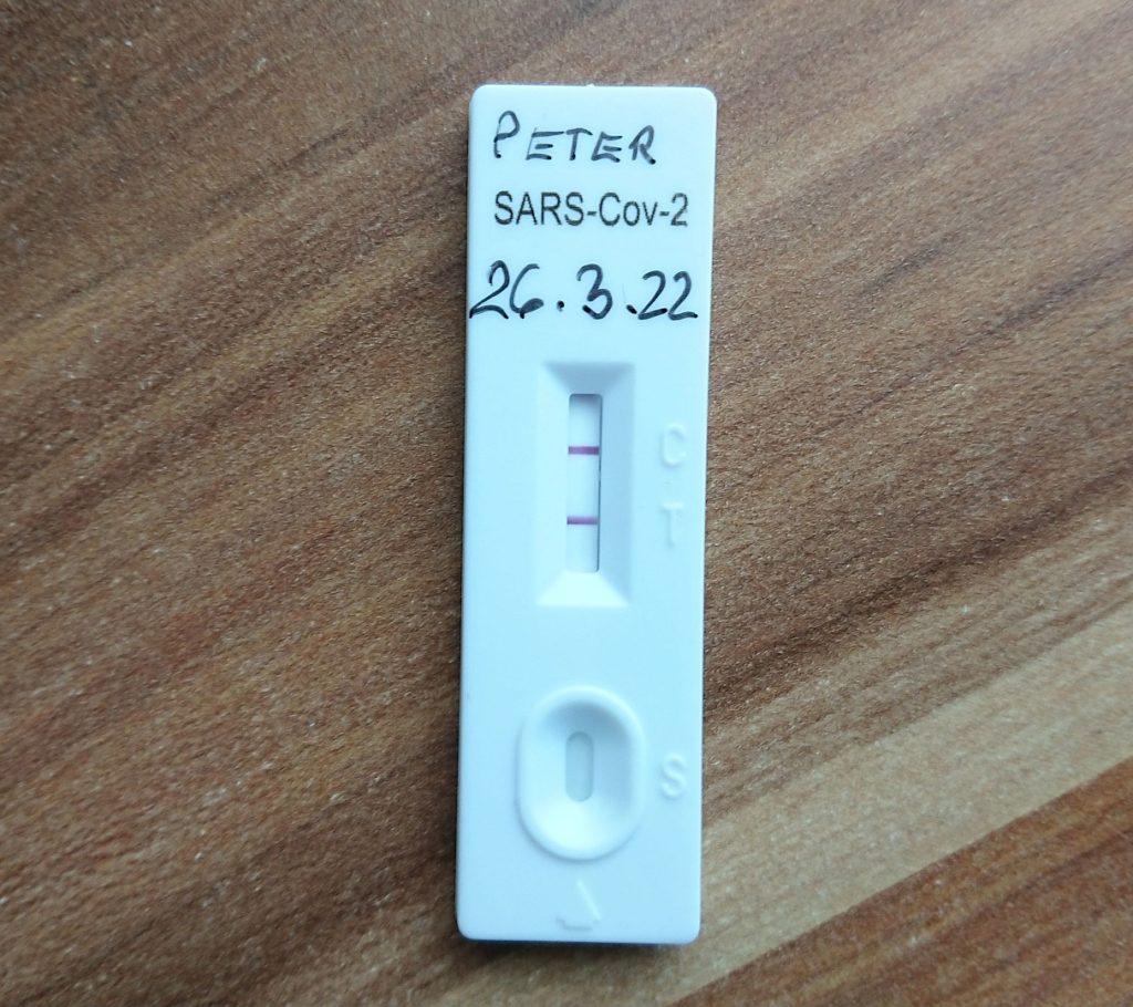 Ich hab am 25. März am Abend schon ein bissl Halsweh gehabt. Sieglinde schiebt Panik wegen ihrer Kur. Also am 26.3. in der Früh einen Schnelltest:
