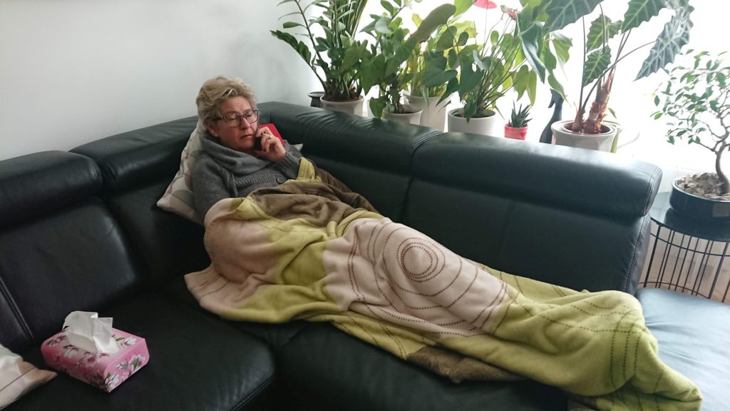 Da kam Sieglinde mit so viel Power an, dass sie voll Schwung alles wieder wegräumte und herumwurschtelte, und dann war der Ofen aus. Halsweh, Schnupfen, Kopfweh, Müde – das Selbe wie bei mir.