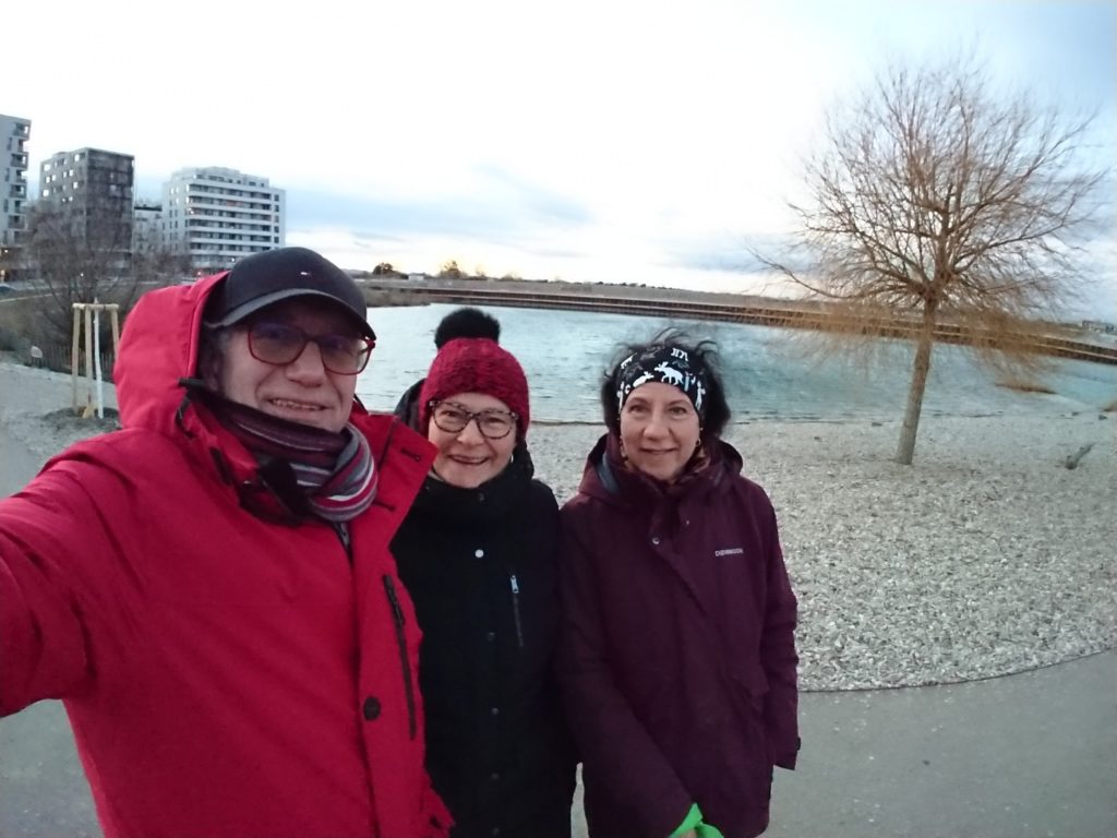 Wir trafen schon am Nachmittag bei Ilona zu einer Jause und einem Spaziergang (natürlich mit und auch wegen Tonka) in die Seestadt ein.