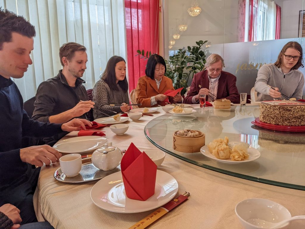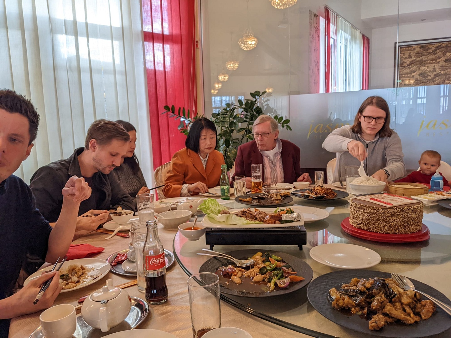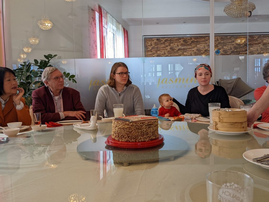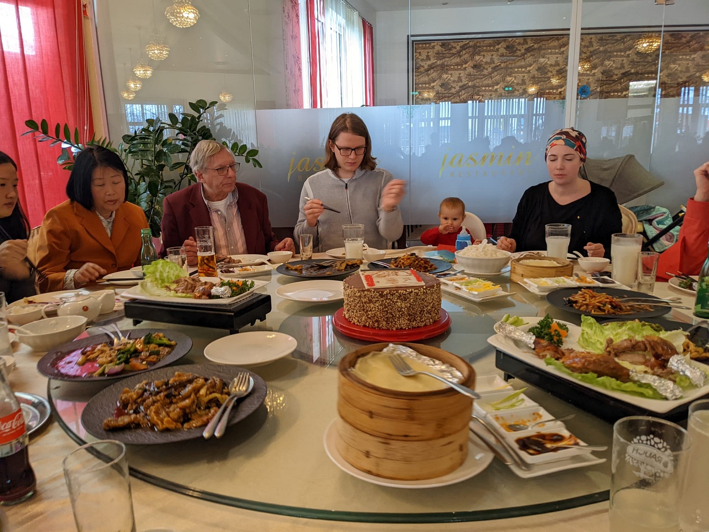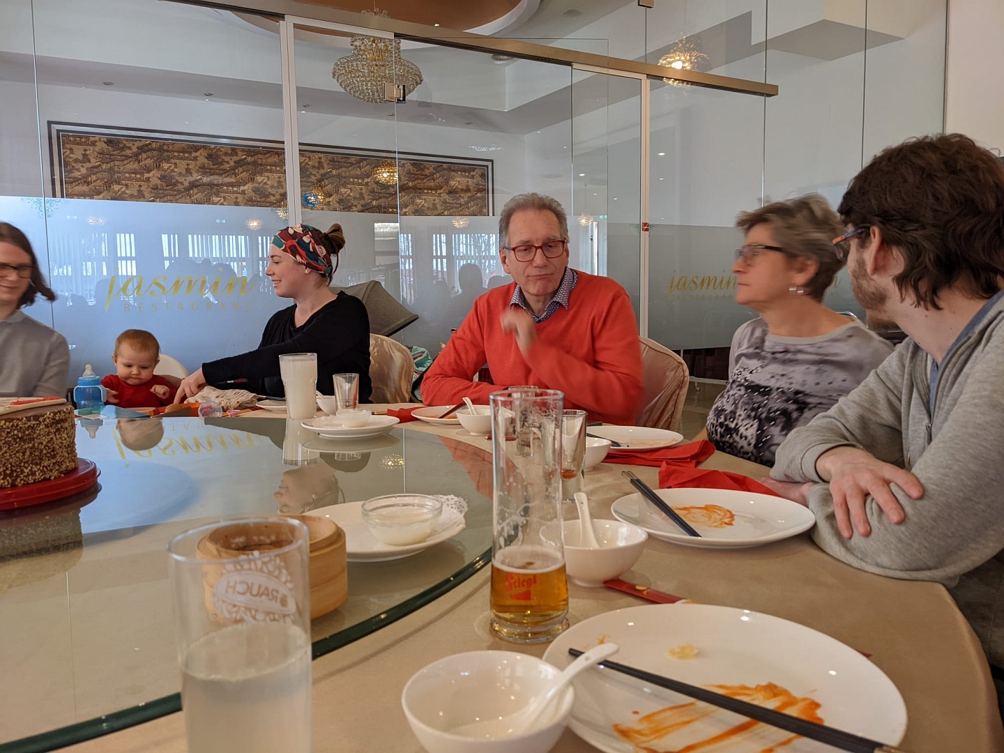 Terminbedingt zwei Tage zu Früh fand Gerhards Geburtstagsparty zum 70er im Restaurant Jasmin in der Breitenleer Straße statt. Eine im Durchschnitt junge Runde mit viel gutem Essen. Gerhard hatte mit Huis Unterstützung das Essen für alle vorausbestellt und wir mussten nur mehr zugreifen! Zuert gab es Vorspeisen, dann Peking Ente und dann hab ich den Überblick verloren.