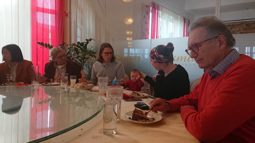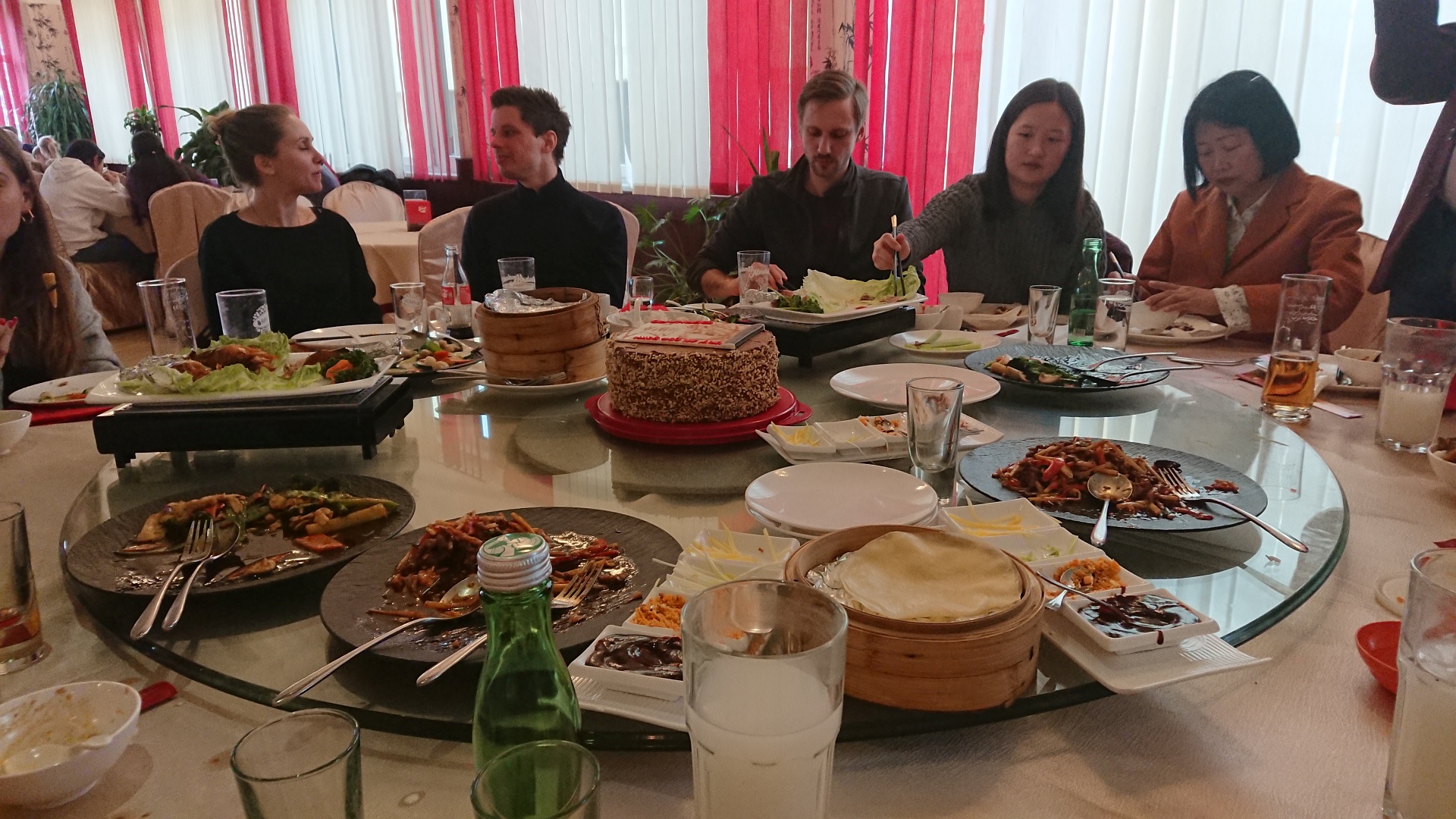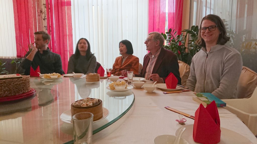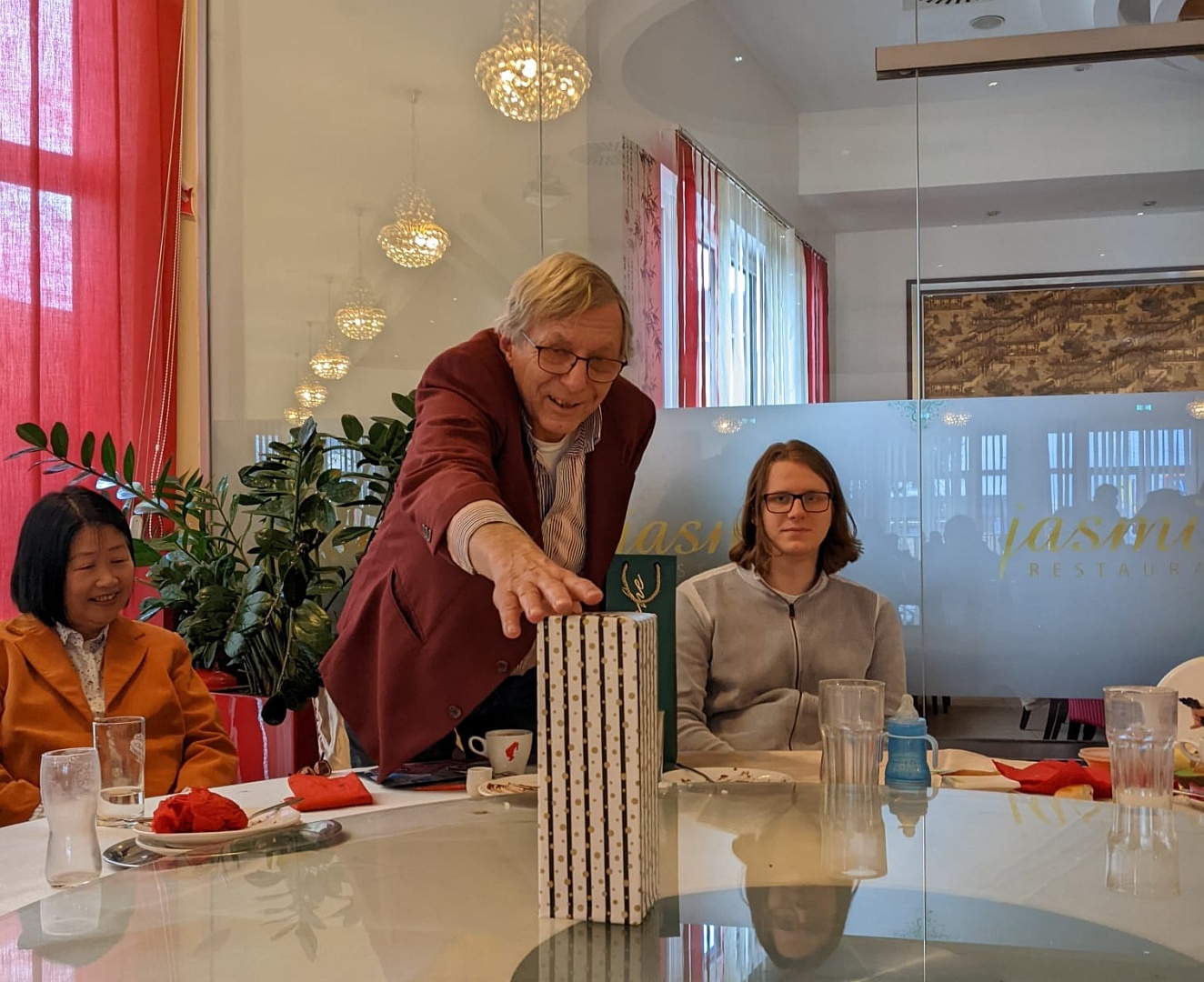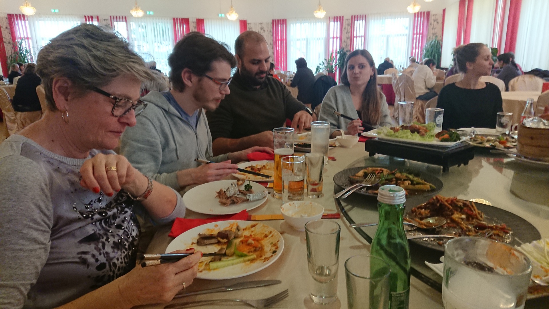 Terminbedingt zwei Tage zu Früh fand Gerhards Geburtstagsparty zum 70er im Restaurant Jasmin in der Breitenleer Straße statt. Eine im Durchschnitt junge Runde mit viel gutem Essen. Gerhard hatte mit Huis Unterstützung das Essen für alle vorausbestellt und wir mussten nur mehr zugreifen! Zuert gab es Vorspeisen, dann Peking Ente und dann hab ich den Überblick verloren.