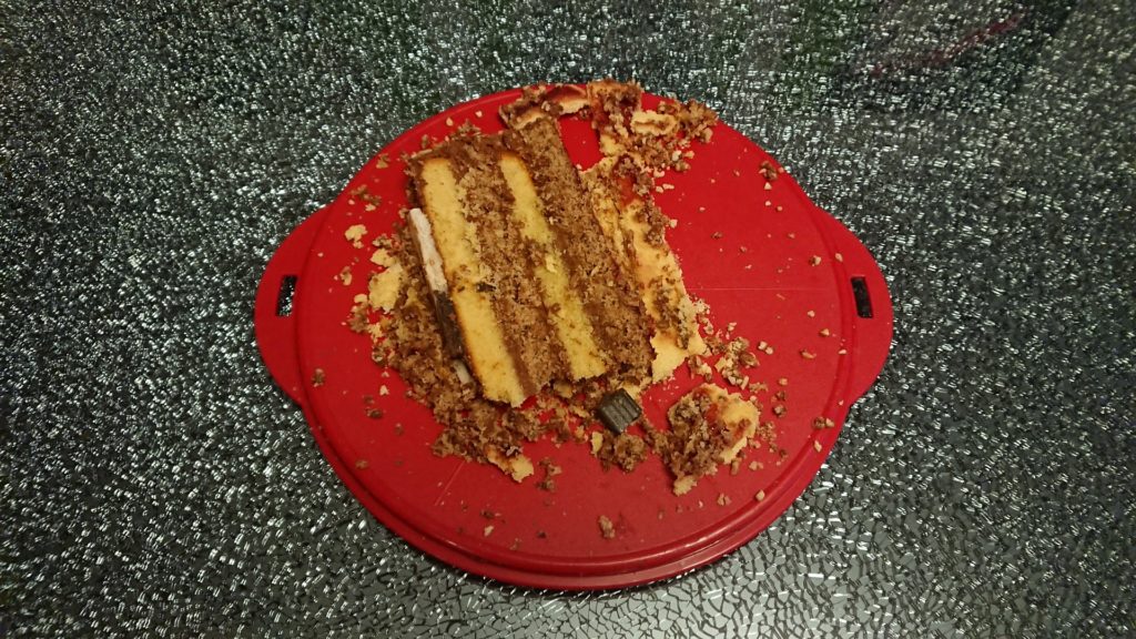 Zum Abschluß wurde noch meine Torte aufgeteilt und dann waren alle wirklich abgefüllt.