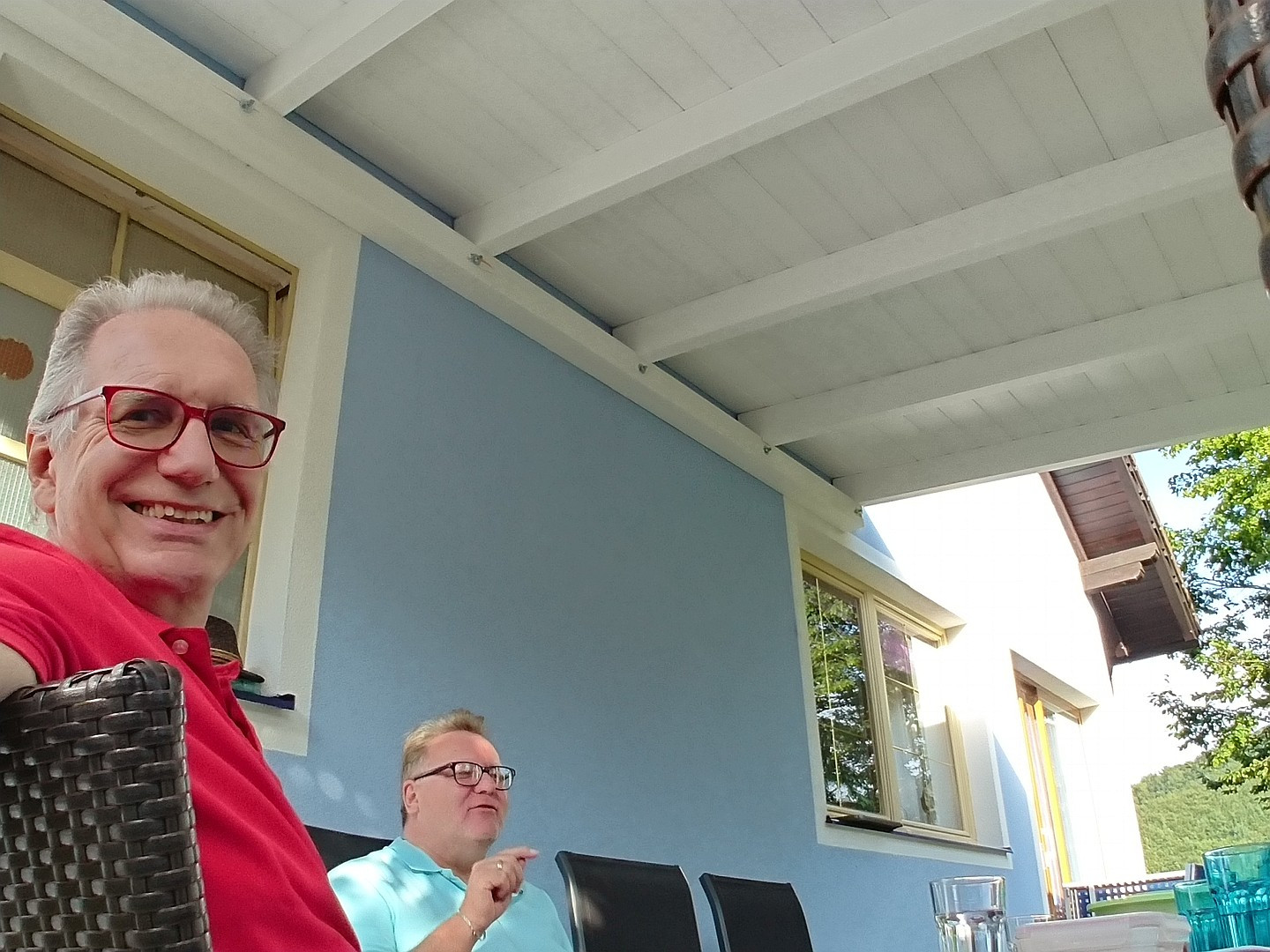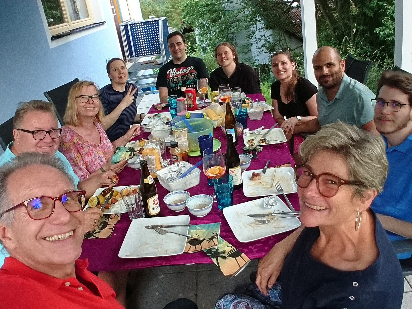 Veröffentlicht am 6. Juli 20237. Juli 2023 von PeterGrillerei unter Dach Großes Aufgebot unter dem neuen Sonnen-/Regen- Dach bei den Poltras. Die Erste Grillerei war wettertechnisch und kulinarisch ein voller Erfolg! Dann machten wir noch einen kleinen(!) Verdauungsspaziergang zur Bürgmann’schen Baustelle.
