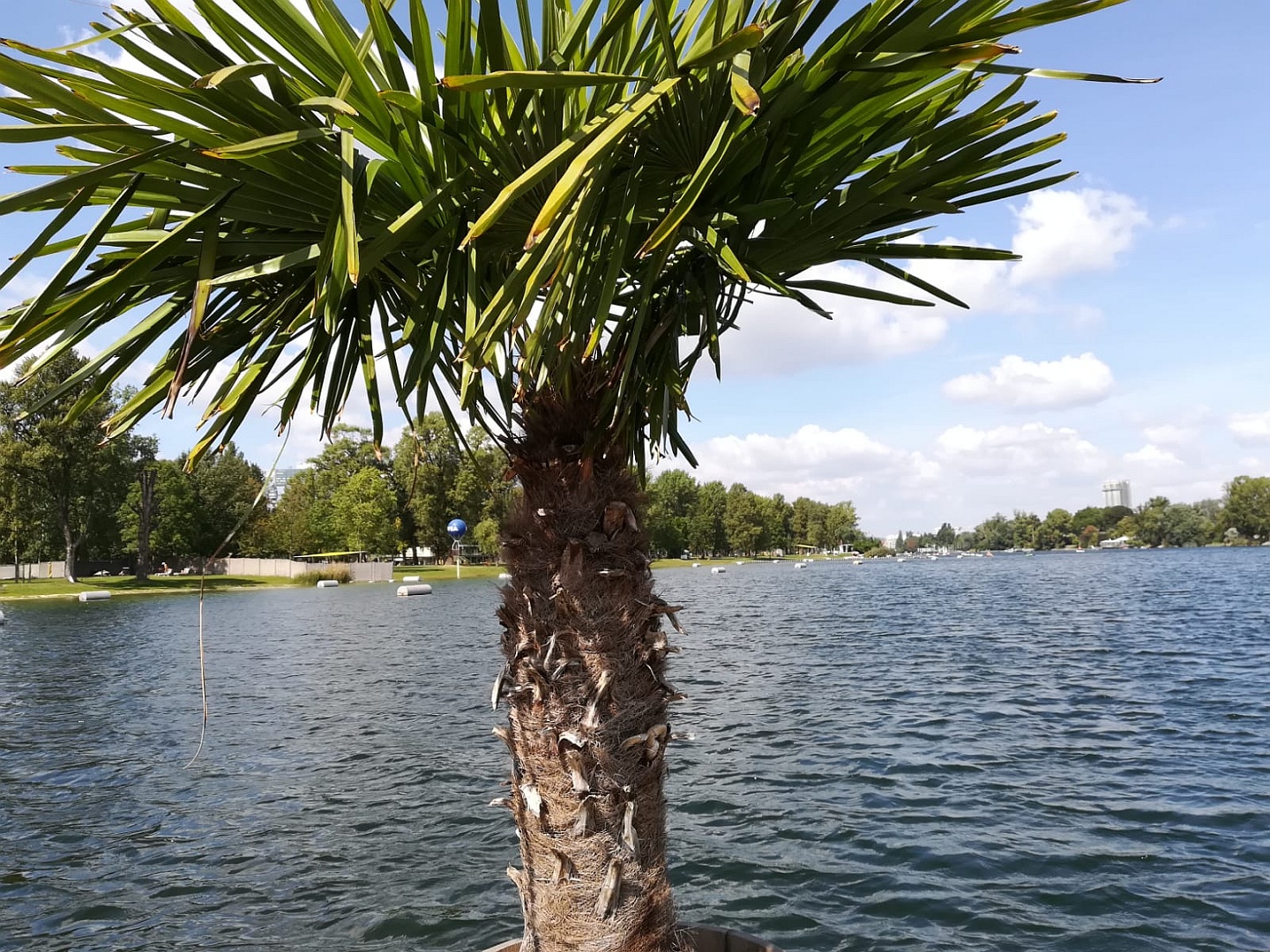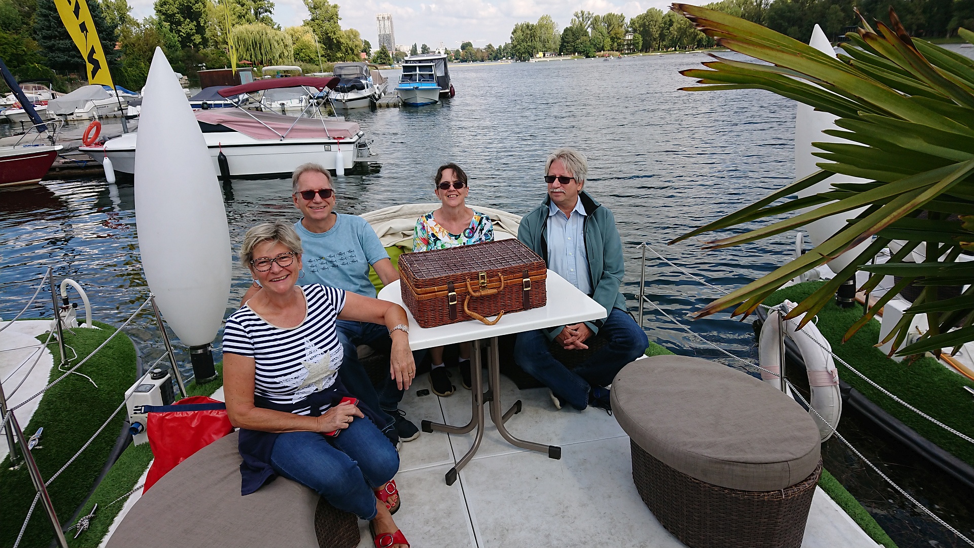Witterungsbedingt starteten wir schon zu Mittag. An Board gabs Fleischlabern und Erdäpfelsalat, aber natürlich haben wir mit Frizzy angestoßen!