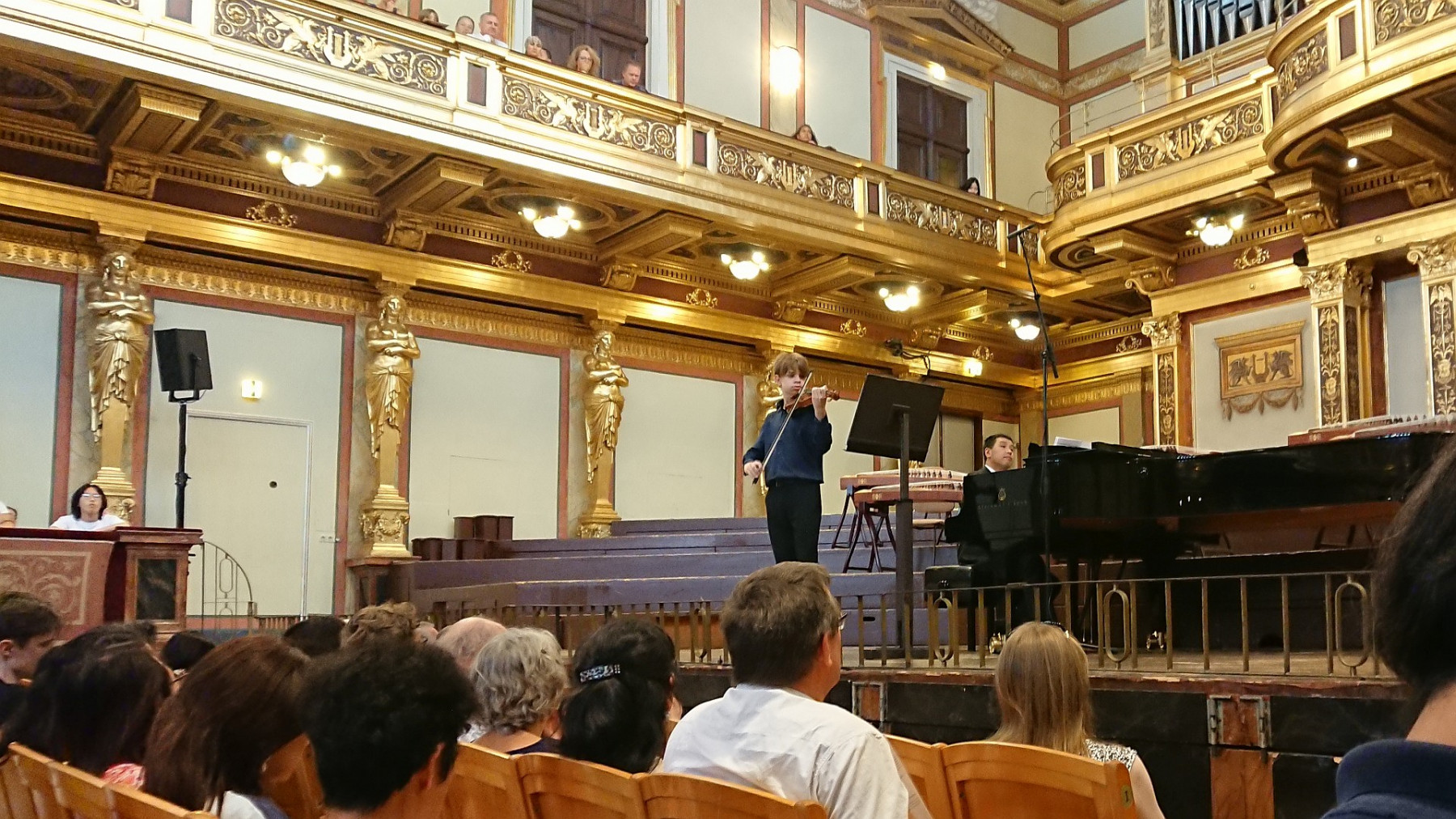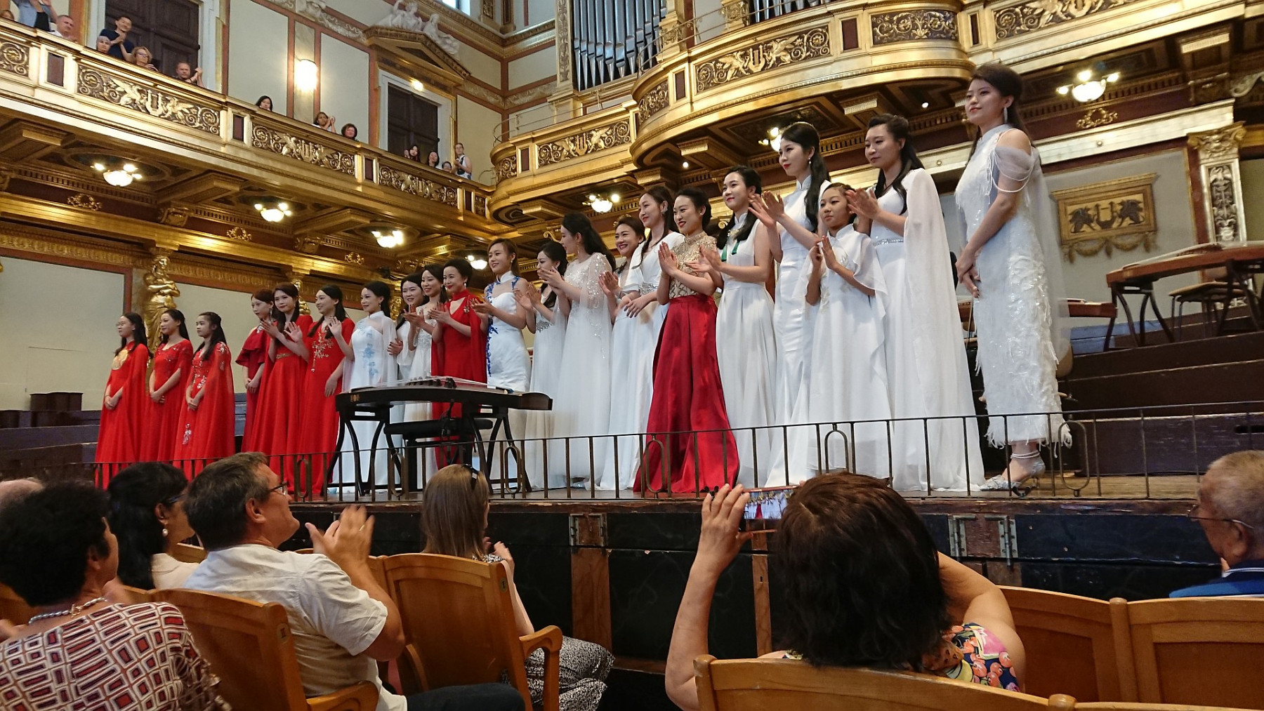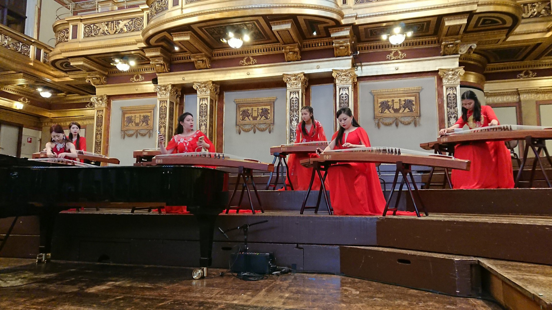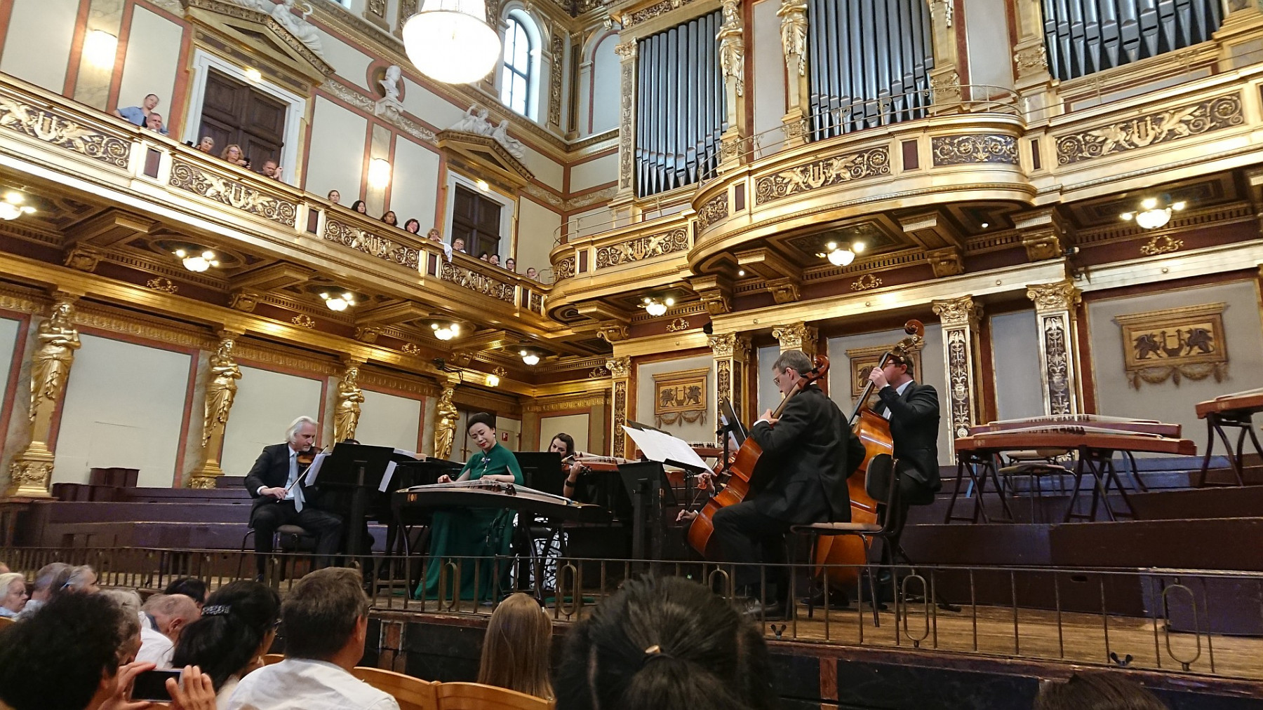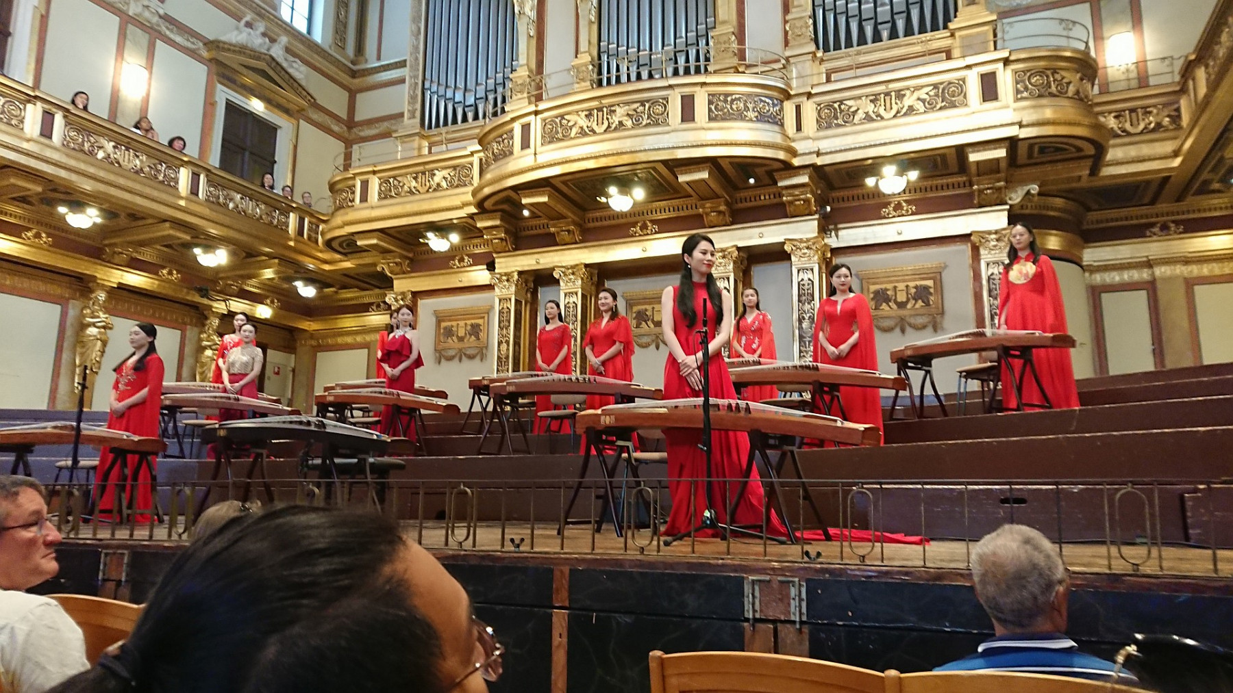 Wir wurden überraschend von Gerhard bzw. Hui auf ein Chinesisches Konzert im Musikvereinssaal eingeladen. Die Künstlerin Lu Jing spielte mit verschiedenen Esembles auf einem Guzheng, einer Art chinesischer Harfe bzw Zither. Begleitet wurde sie entweder von mehreren anderen Guzheng Spielerinnen, einem Pianisten oder den Vienna Strings Quartett (das waren interessanter Weise 5 Personen, aber vielleicht hat die Dame an der 2. Geige nicht gezählt 😉 Dann gab es noch einen Satz aus einem Violinkonzert von einem jungen Geiger mit Pianobegleitung.