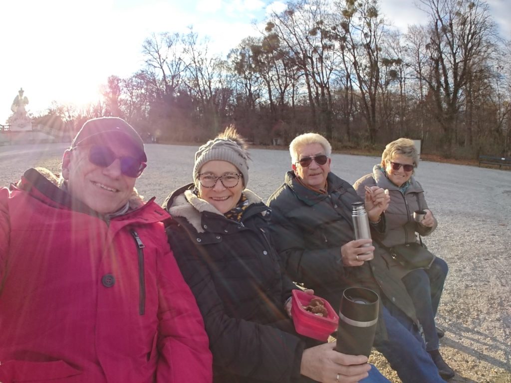 Veröffentlicht am 3. Dezember 20214. Dezember 2021 von PeterLockdownjause Wenn es dann ganz fad daheim ist, trifft man sich an der frischen Luft zu einer Lockdown-Jause mit Kaffee und Keksen in Schömbrunn. Helmut war so brav, dass er sich noch einen Kinderpunsch in der Meierei kaufen durfte!