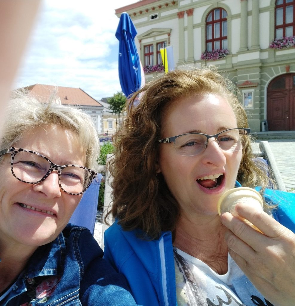 Ich machte den Abholdienst. Wir begannen mit einem Frühstück in Weitra und besuchten dann die Blockheide und das Stift Zwettl.