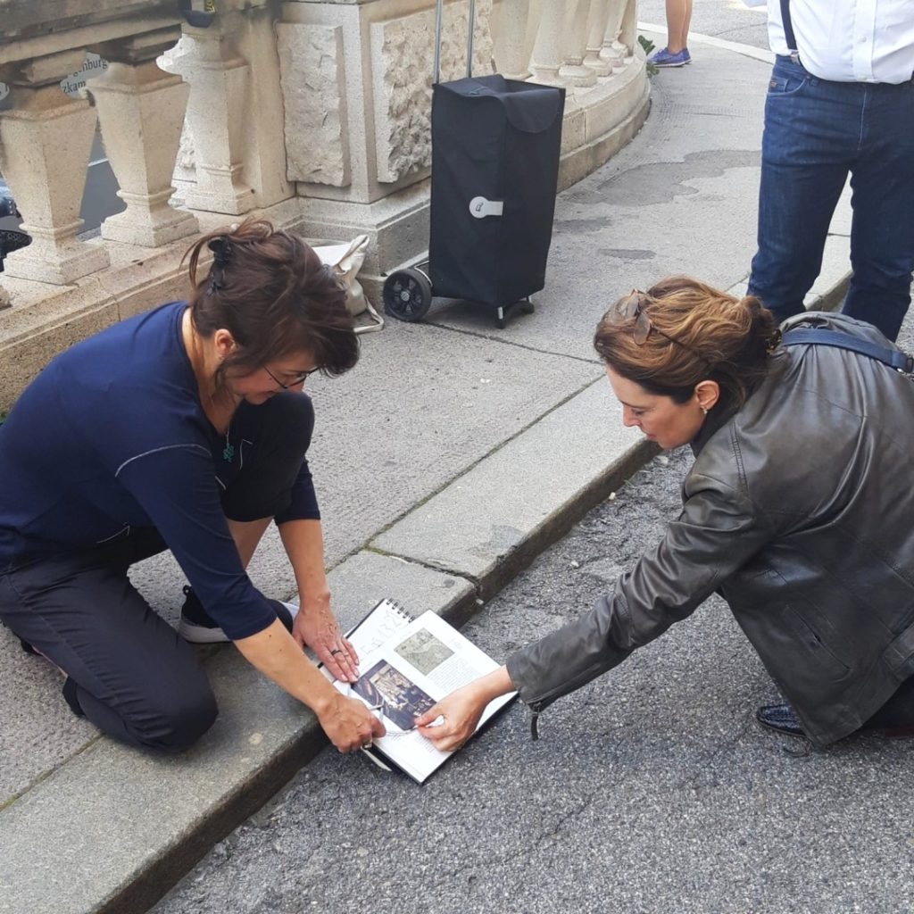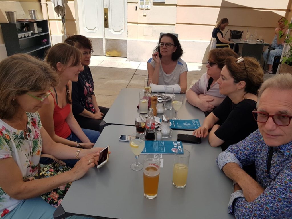 Ida konnte sich nicht von ihrer Lehrtätigkeit distanzieren und brachte einiges an Material und ein volles Infoprogramm über Jan Vermeer und seine Technik mit. Ihre „Schulung“ fand deshalb dann als „Rauchpause“ im Freien statt.