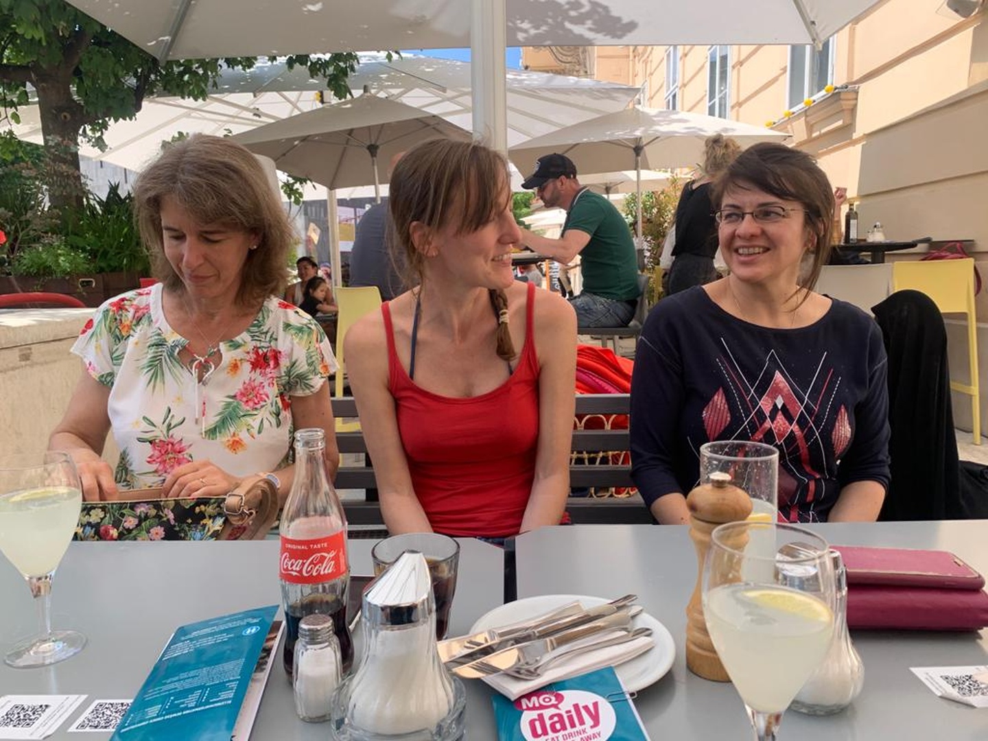 Ida konnte sich nicht von ihrer Lehrtätigkeit distanzieren und brachte einiges an Material und ein volles Infoprogramm über Jan Vermeer und seine Technik mit. Ihre „Schulung“ fand deshalb dann als „Rauchpause“ im Freien statt.