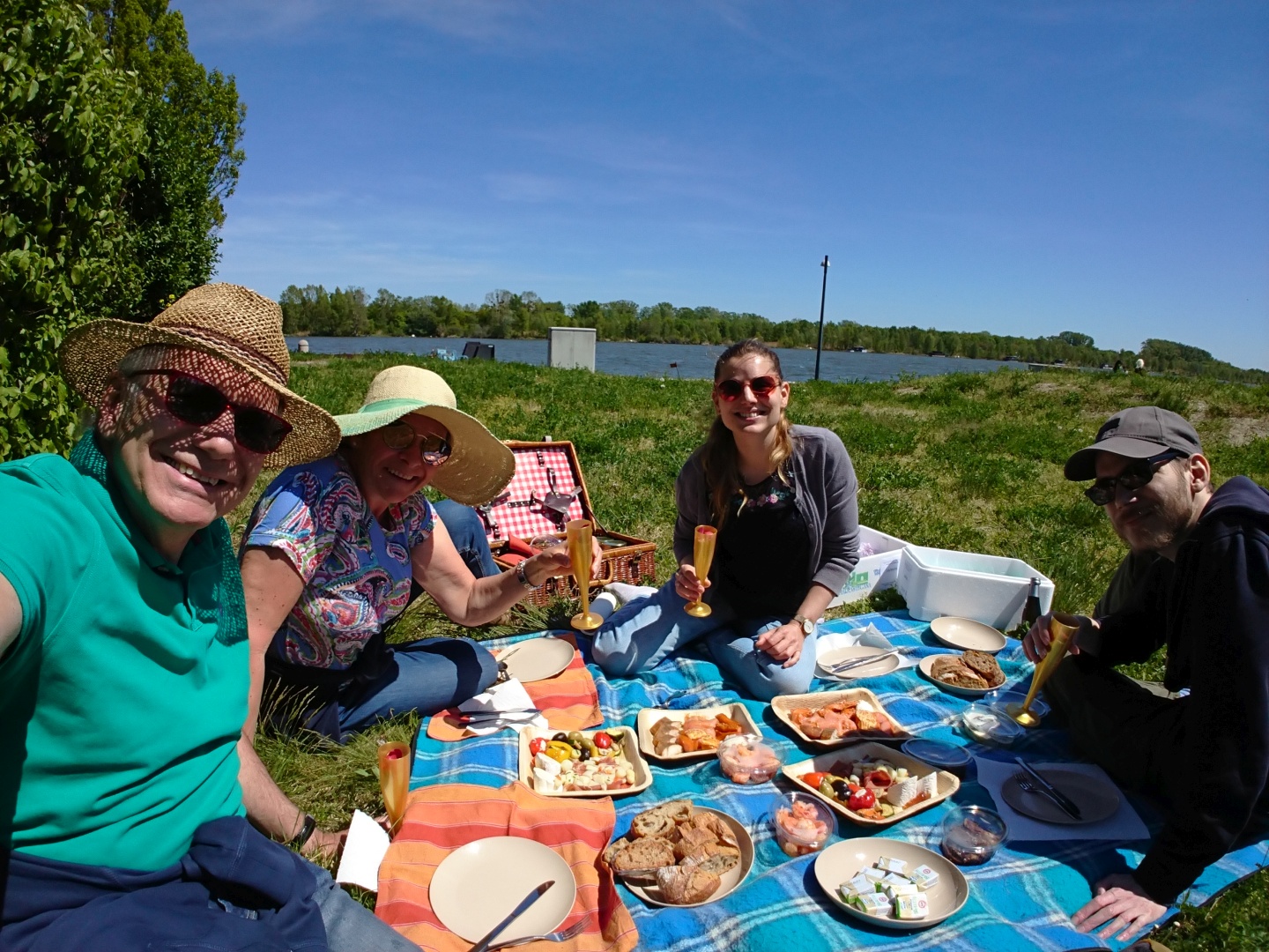 Corinna hatte die Idee, ein Fischbruch to go beim Hilton Vienna Danube Waterfront zu bestellen und dann gleich an der Donau ein Picknick zu veranstalten.