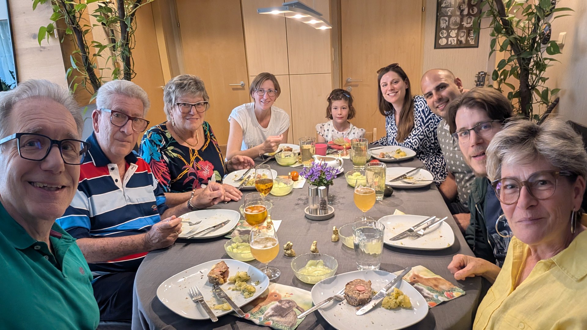 Großes Aufgenbot bei uns zu Hause, d.h. 9 Personen, weil Thomas erwartungsgemäß w.o. gab. Der Stefaniebraten hat den Namen zwar vom Weihnachtsfeiertag, aber er schmeckte zu Ostern auch allen. Zur Jause noch Schokoladetorte und Erdbeer-Rhabarber-Kuchen, der erstaunlicher Weise sogar mehr Anklang fand. Die Bewegungsrunde fand im Matznerpark statt, wobei Team A am Spielplatz war, Team B mit dem Hund (Elfi) spazieren ging und Team C am Bankerl bzw in der Hängematte sitzen blieb. Mit Helmut hab ich dann sogar noch einen Rundgang zum Eisgeschäft unternommen.