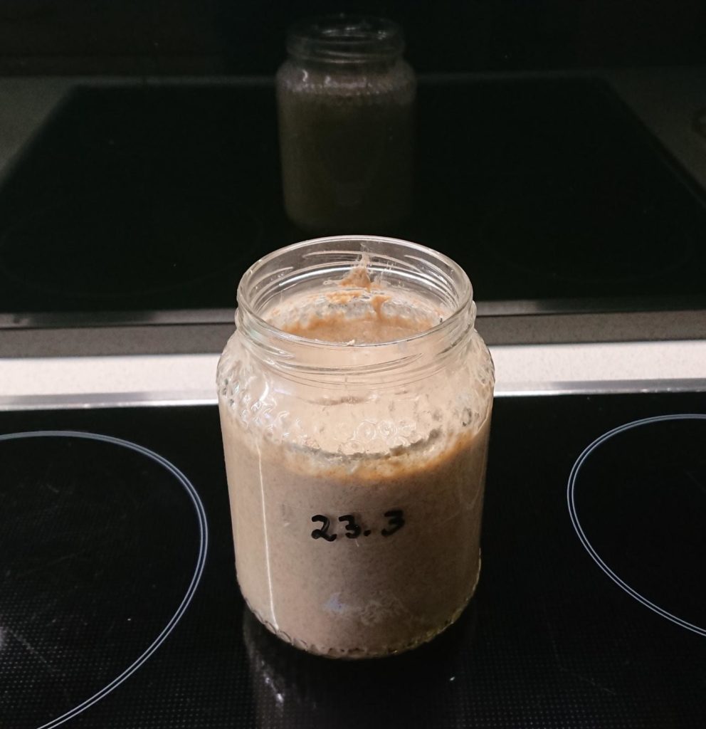 Anstellgut am dritten Tag mit insgesamt 200g Mehl und 200ml Wasser