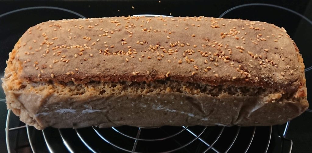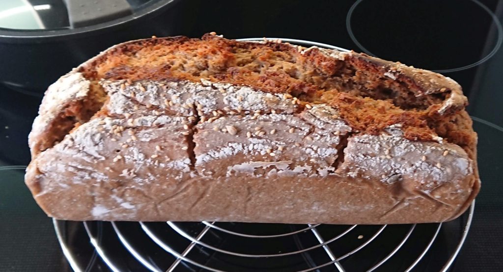 Ergebnis: heller, sehr schöne Kruste, gut durch, schmeckt typisch nach Roggenbrot, ein bisschen größer aber ziemlich fest und nach 3 Tagen ist der Rest kaum noch essbar.