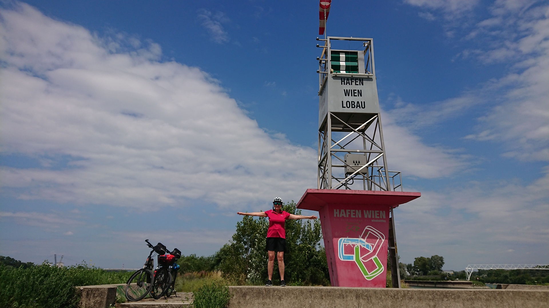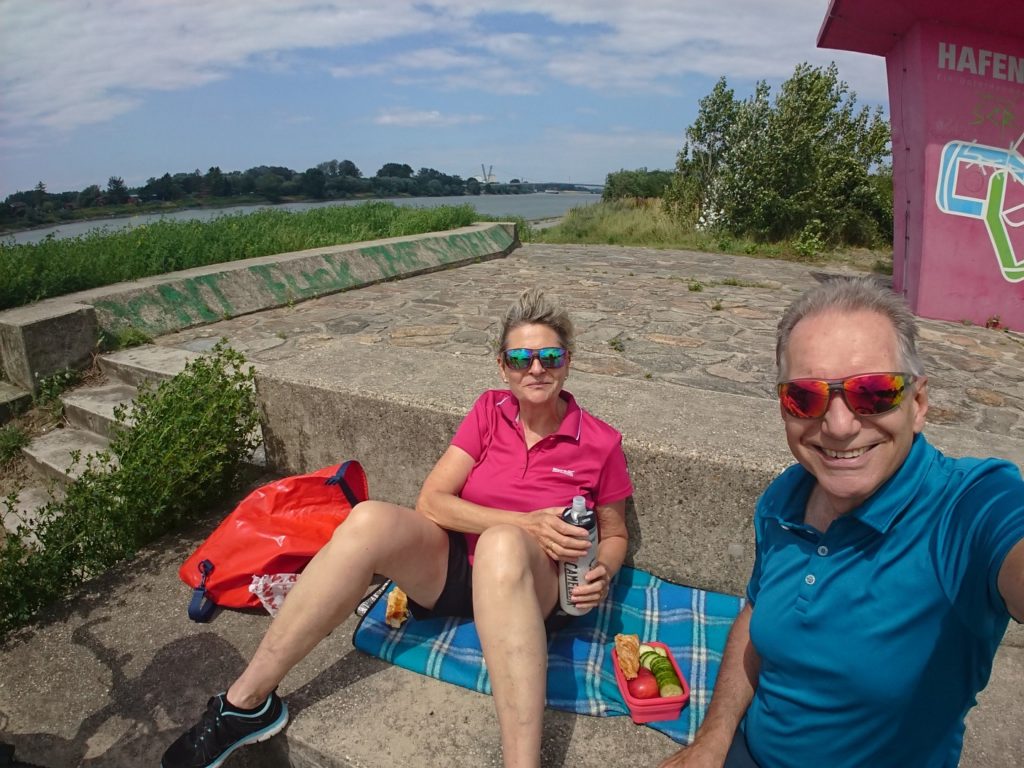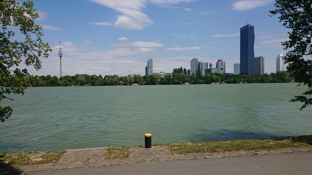MIt der S45 zum Handelskai. Die Überfahrt auf die Insel war auch für Fahrräder gesperrt, also sind wir runter bis zur Reichsbrücke, dort auf die Insel und weiter bis zum Ende. Am Rückweg ein kurzer Badestopp. Leider war weder das Wetter (sehr windig) noch das Wasser (sehr viele Algen) besonders einladend. Aber es war ein gelungener 36km Ausflug.