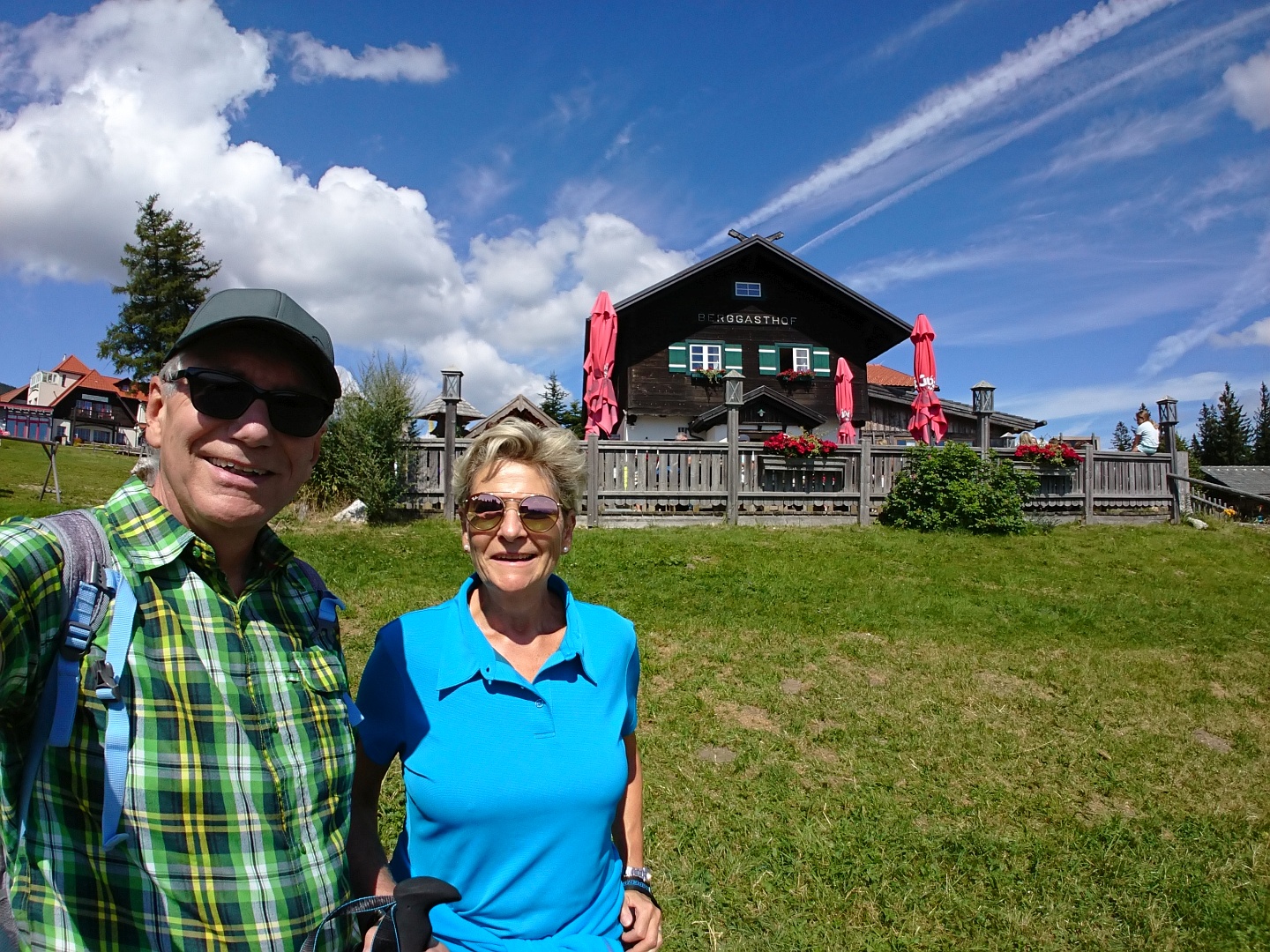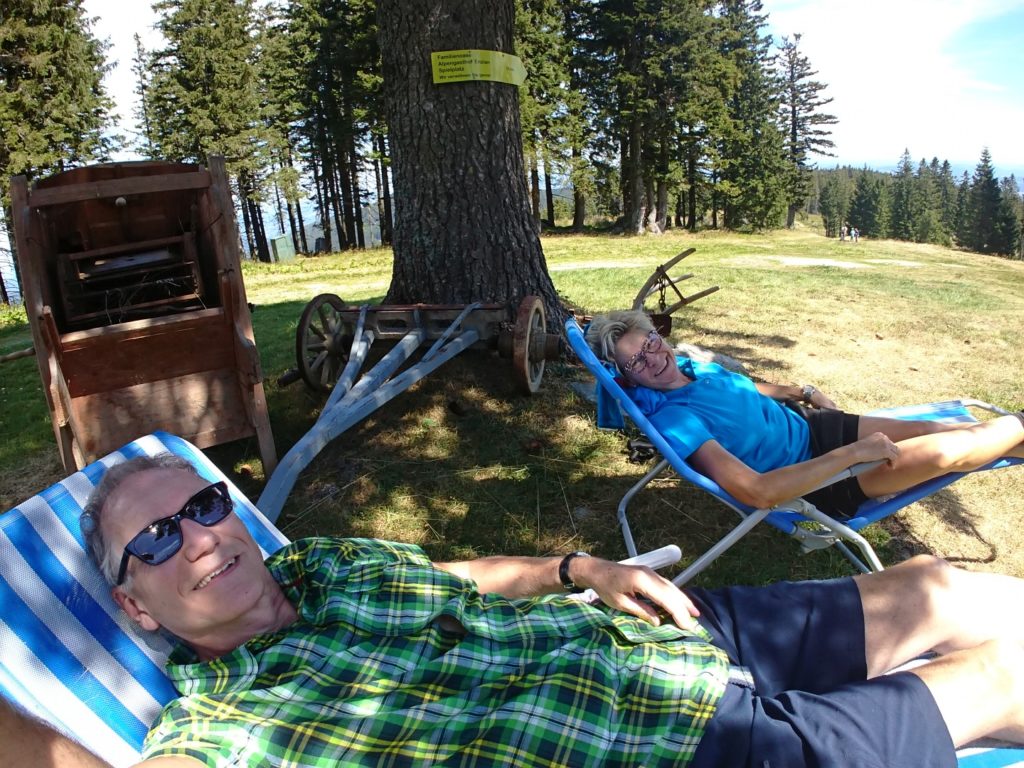 Das Wanderwetter lockte uns nach Mönichkirchen. Zuerst wanderten wir auf die Schwaig zum ehemaligen Berggasthof Stern wo wir uns ein gutes Schnitzerl und Zucchini-Gordon-Bleu gönnten. Dann ging’s weiter aufs Hallerhaus zu Kaffee und Kuchen – natürlich die lange Runde durch den Wald. Am Berg gab’s genügend Wanderer*innen und viele Kinder auf den zahlreichen Spielplätzen.