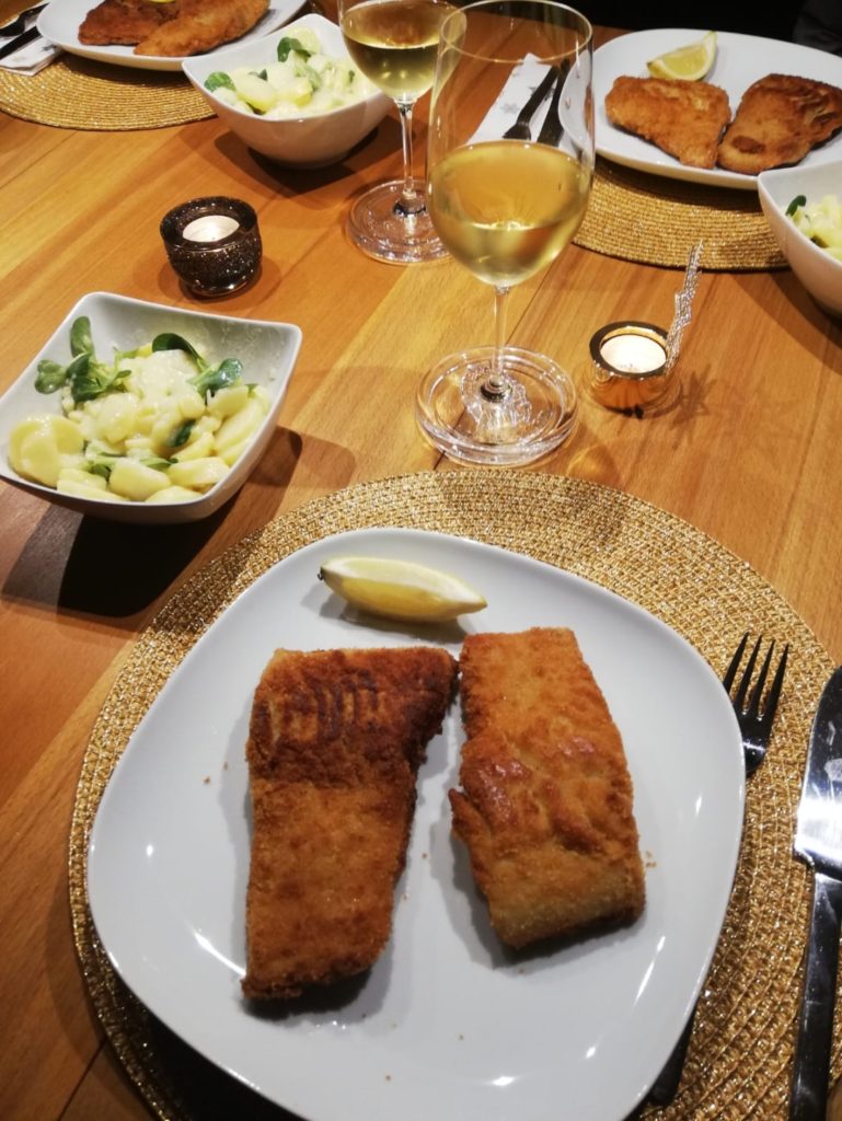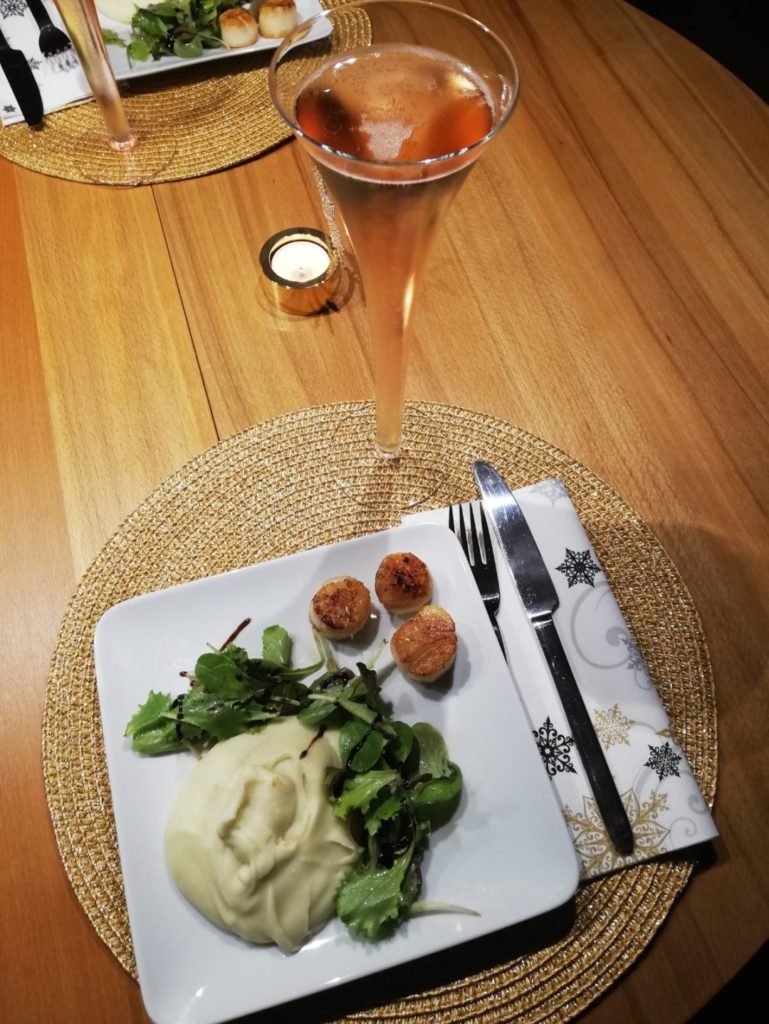 Kulinarisches highlight waren die gebratene Jakobsmuscheln mit Blattsalat an getrüffeltem Erdäpfelpürre zur Vorspeise. Dann kam die ausgiebige Bescherung und dann der obligate Karpfen. In trauter „Viersamkeit“ hatten wir es sehr gemütlich und genossen den Abend.