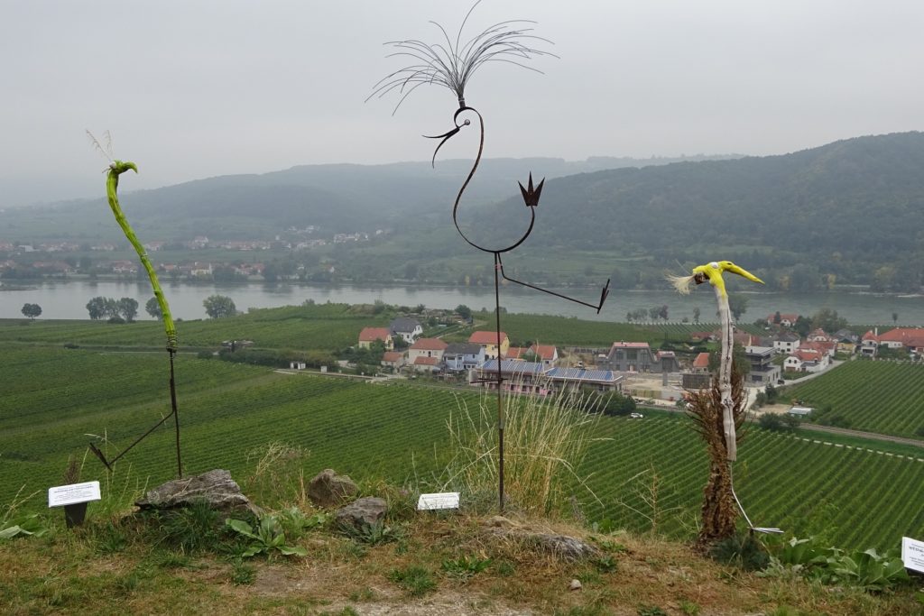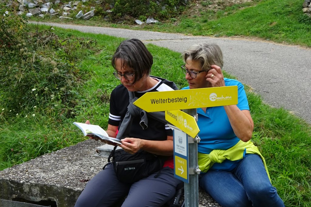 In bewährter Weise haben wir für das „letzte Schöne Wochenende“ eine Wanderung mit den Mischeks am Welterbesteig von Krems nach Dürnstein geplant. Um die langweilige Strecke durch Krems anzukürzen sind wir aber erst in Stein gestartet. Geparkt haben wir praktischer Weise beim Heurigen Mayer-Resch, wo wir für nachher einen Tisch reserviert hatten.