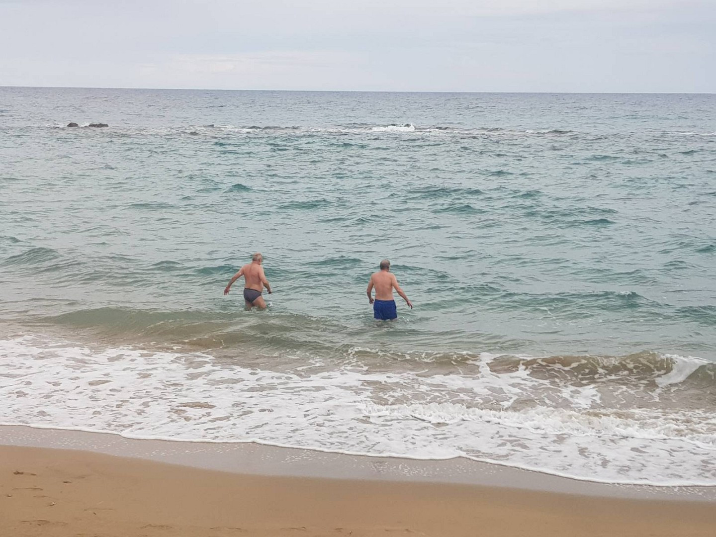7. Tag – fakultative Jeep-Tour zu (nachgebildeten) Terrakotta-Figuren, einer Käsemacherin, einem Bäcker wo wir selber kneten durften und zu unterirdischen Königsgräbern. Essensstopp in einem Lokal am Caretta-Strand. Keine Schildkröten zu sehen und nur eine ganz „Alternative“ ließ es sich nicht nehmen trotz Kälte schwimmen zu gehen.